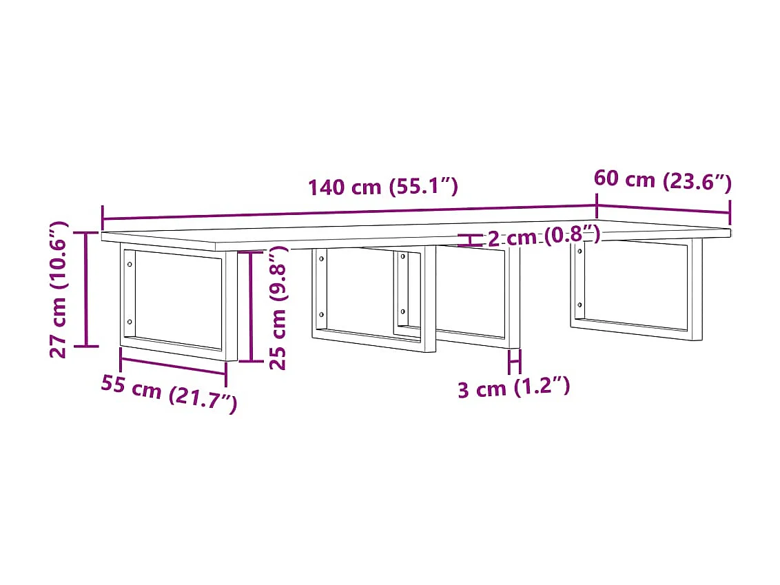 Ripiano a Parete per Lavabo in Acciaio e Massello di Acacia