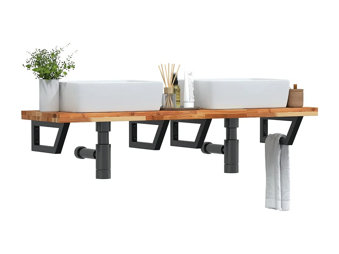 Ripiano a Parete per Lavabo in Acciaio e Massello di Acacia