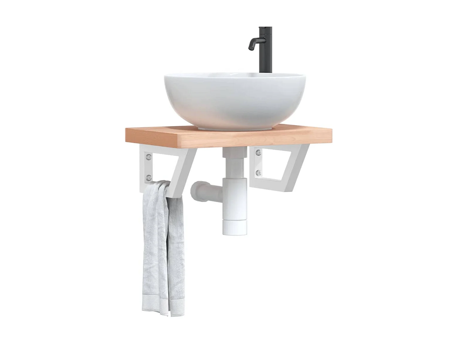 Ripiano a Parete per Lavabo in Acciaio e Massello di Faggio