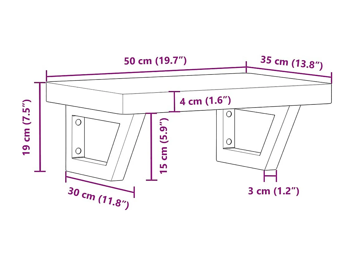 Ripiano a Parete per Lavabo in Acciaio e Massello di Acacia