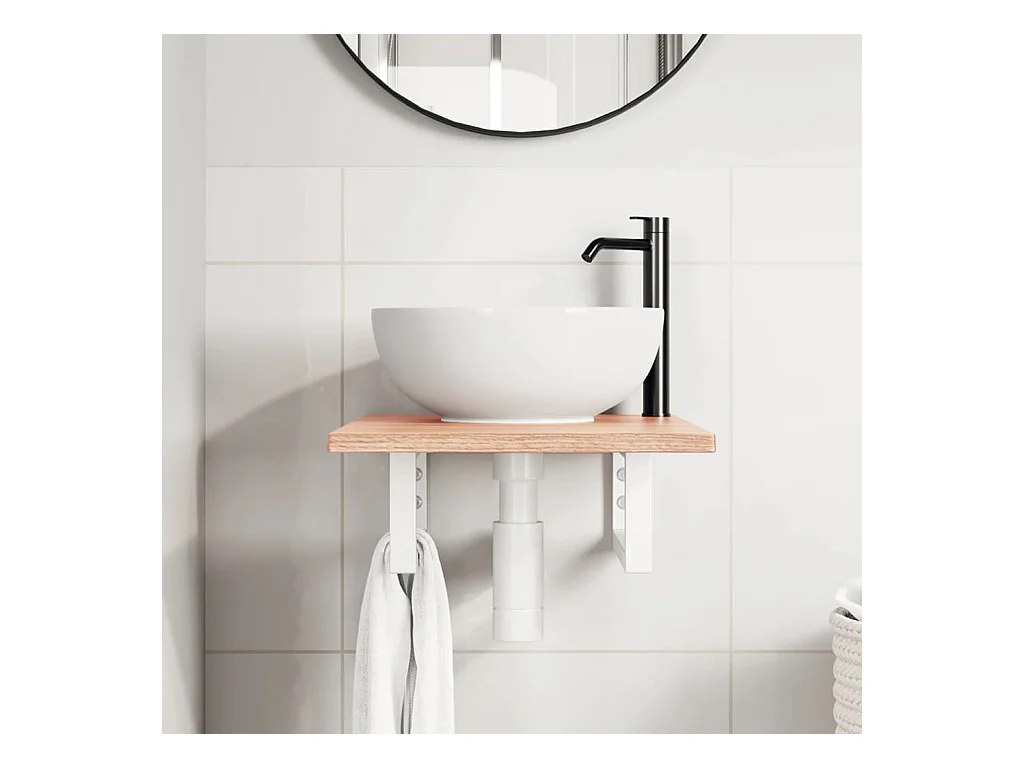 Ripiano a Parete per Lavabo in Acciaio e Massello di Rovere