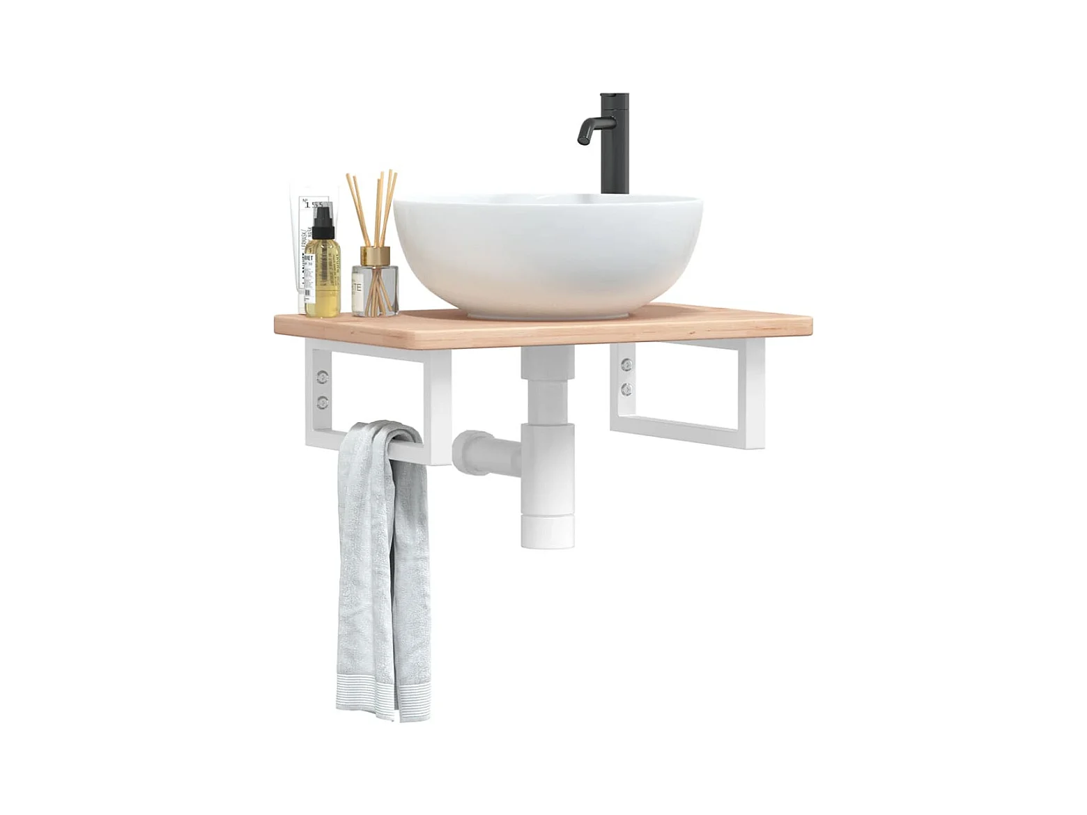 Ripiano a Parete per Lavabo in Acciaio e Massello di Faggio