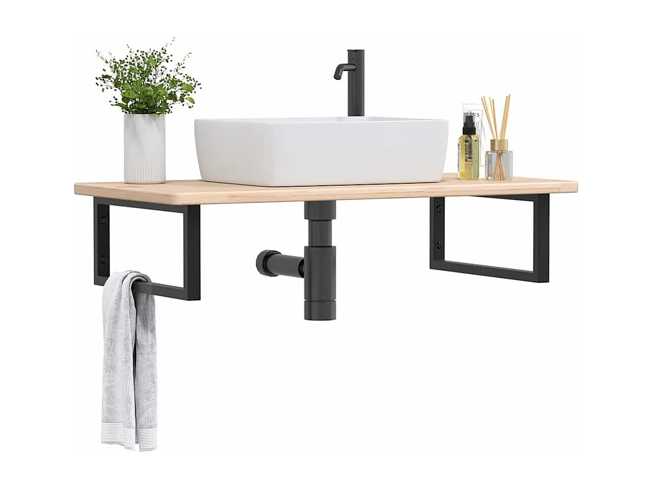 Ripiano a Parete per Lavabo in Acciaio e Massello di Rovere