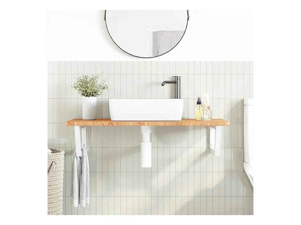 Ripiano a Parete per Lavabo in Acciaio e Massello di Rovere