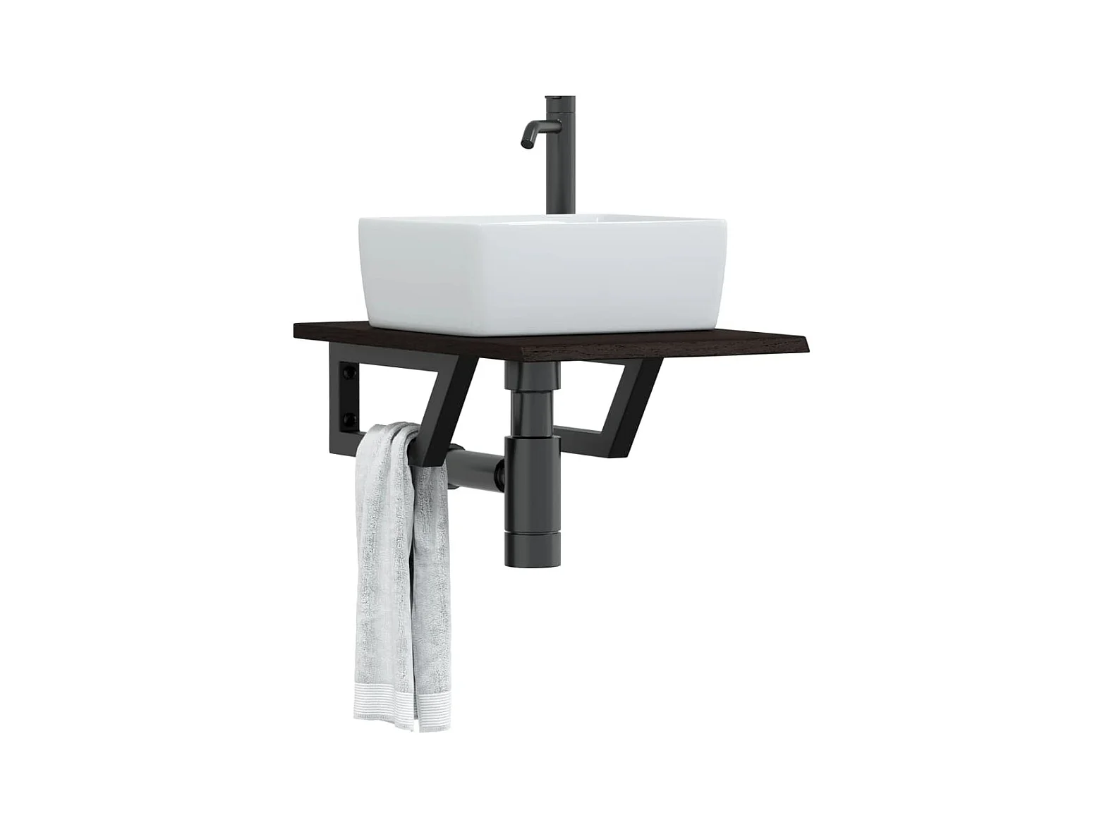 Ripiano a Parete per Lavabo in Acciaio e Massello di Rovere