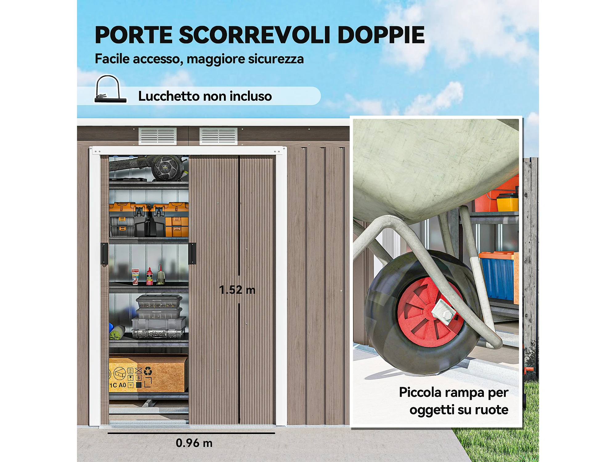 Ripostiglio da giardino con 2 prese d'aria e 2 porte marrone legno