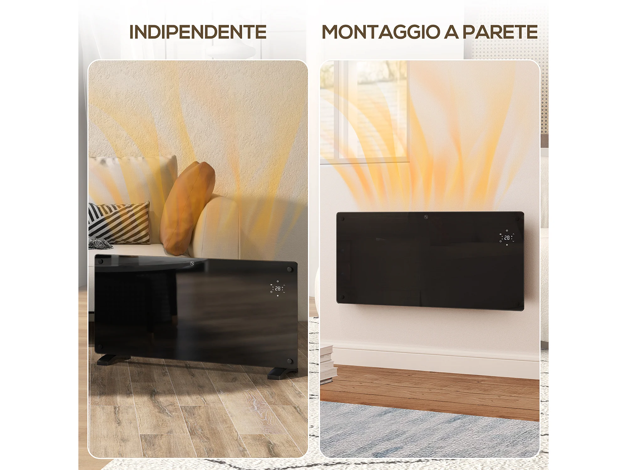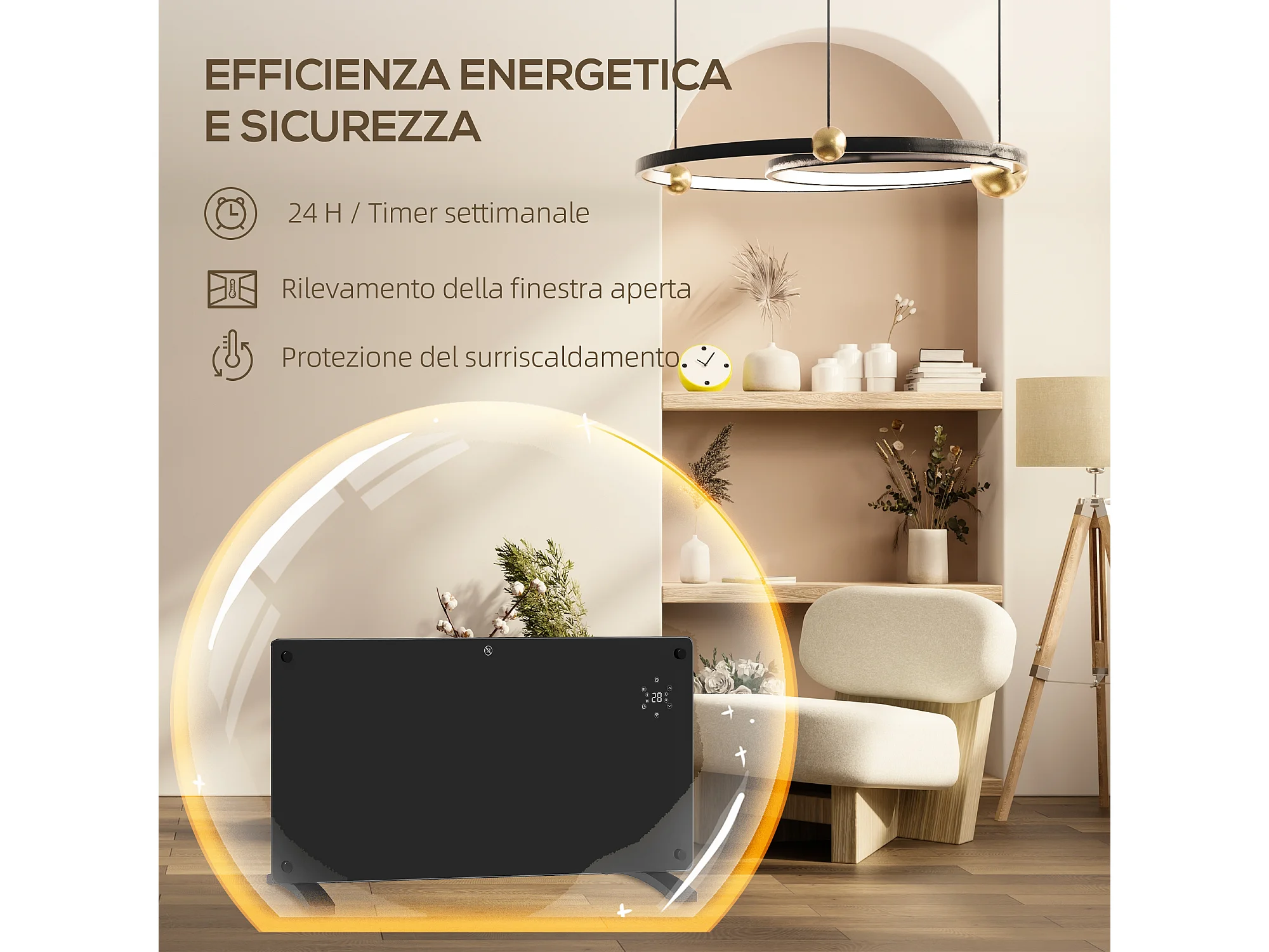 Riscaldatore 2000w con temperatura regolabile timer e telecomando nero