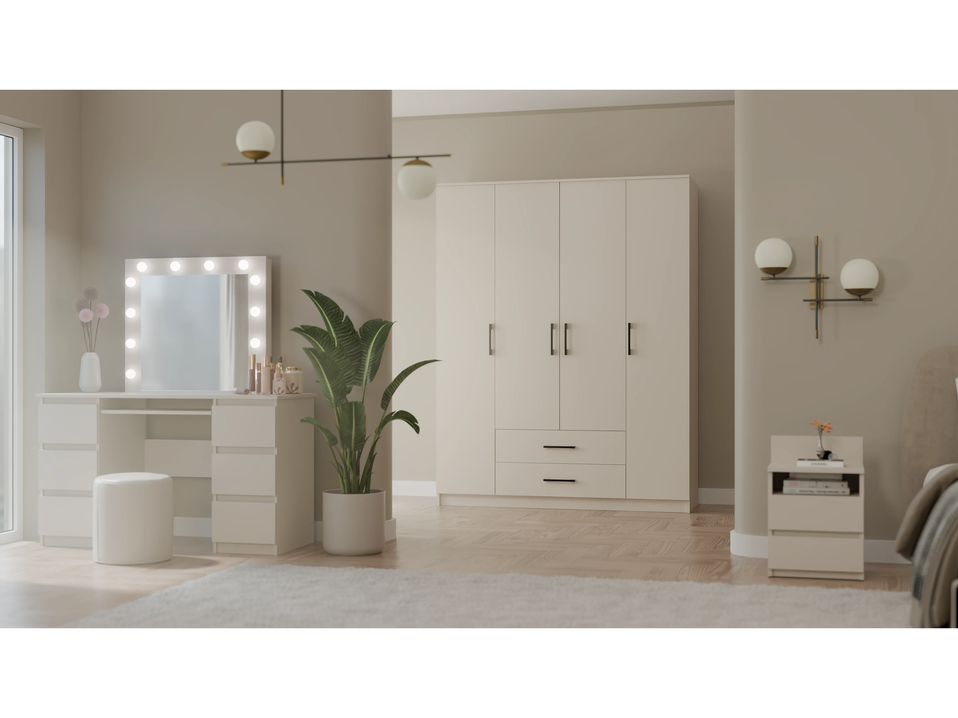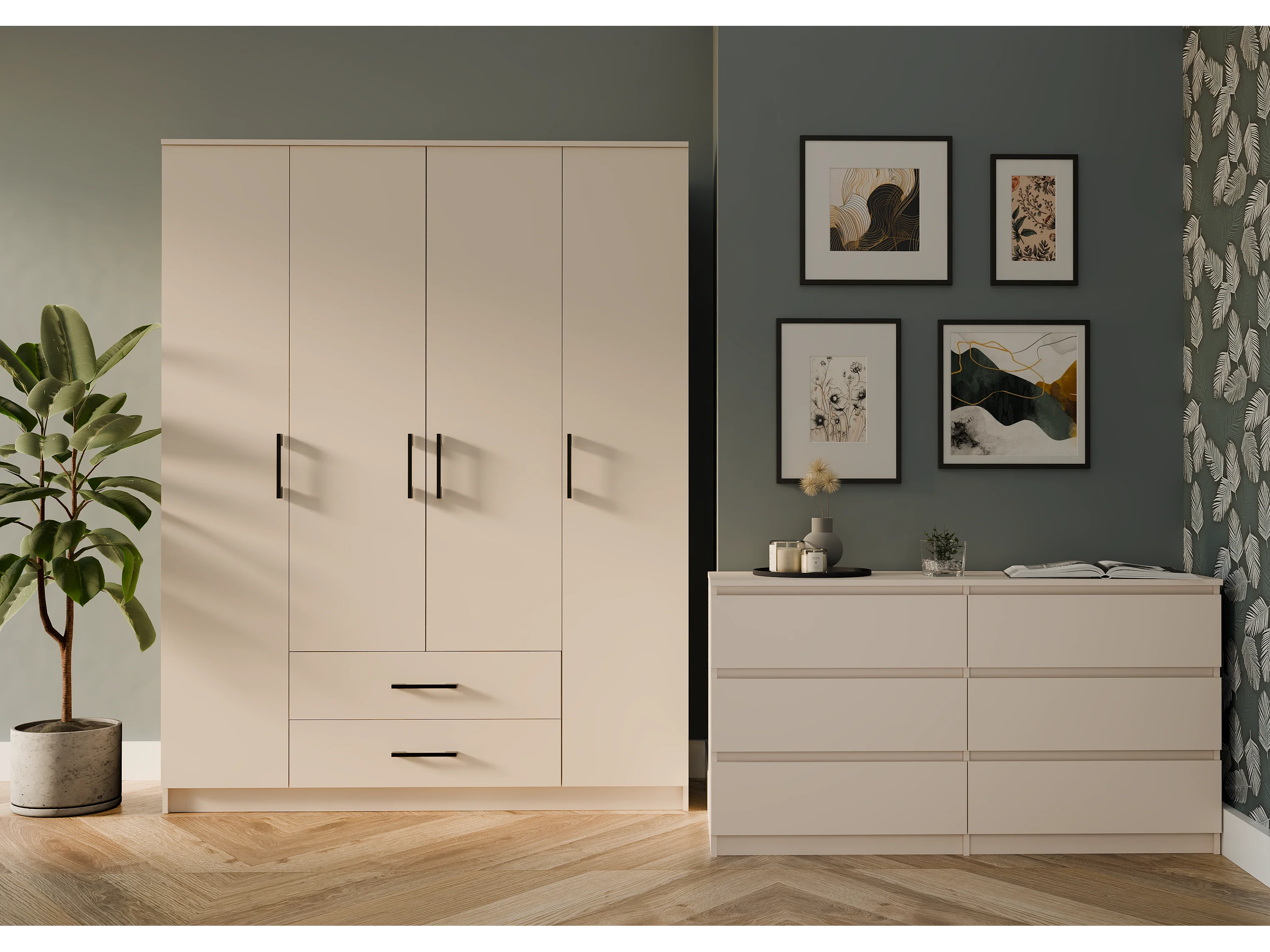 ROMA - Armadio grande camera da letto a 4 ante - 160x52x205 cm - 2 cassetti - Armadio con vano appendiabiti