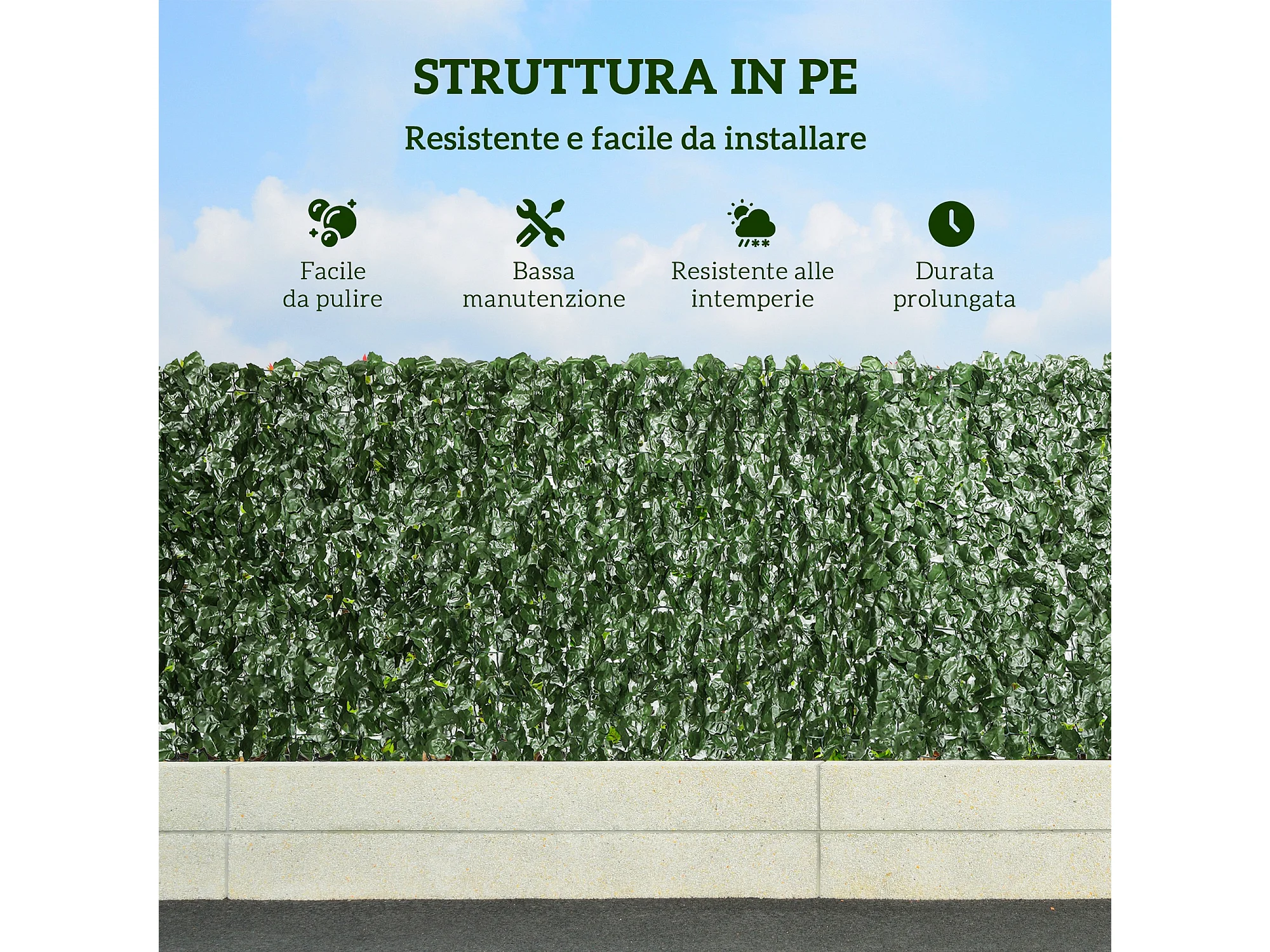 Rotolo di siepe finta con foglie d'edera 300x100 cm verde scuro