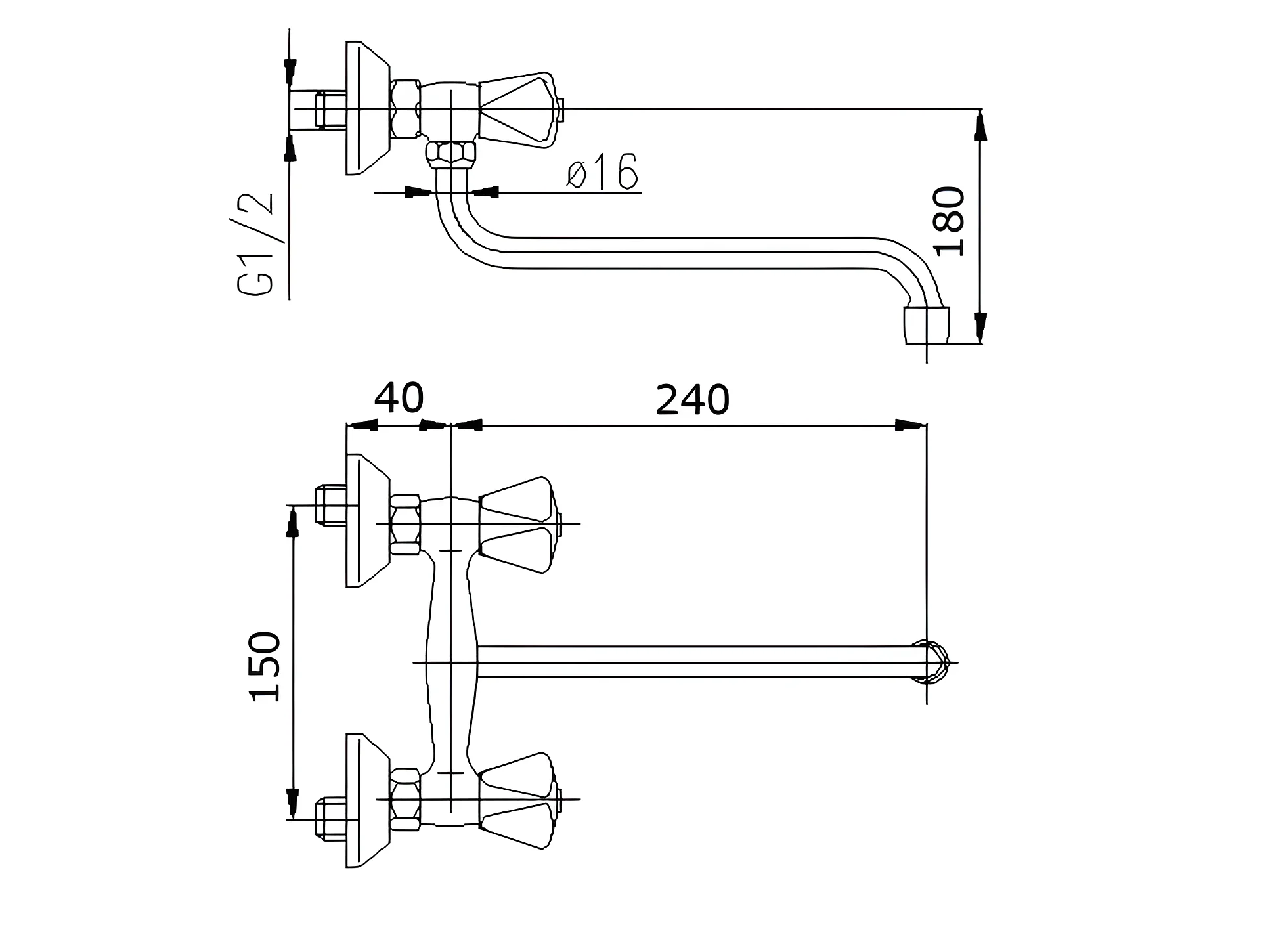 Rubinetto Di Cucina Acqua Fredda A Muro Beccuccio Superiore