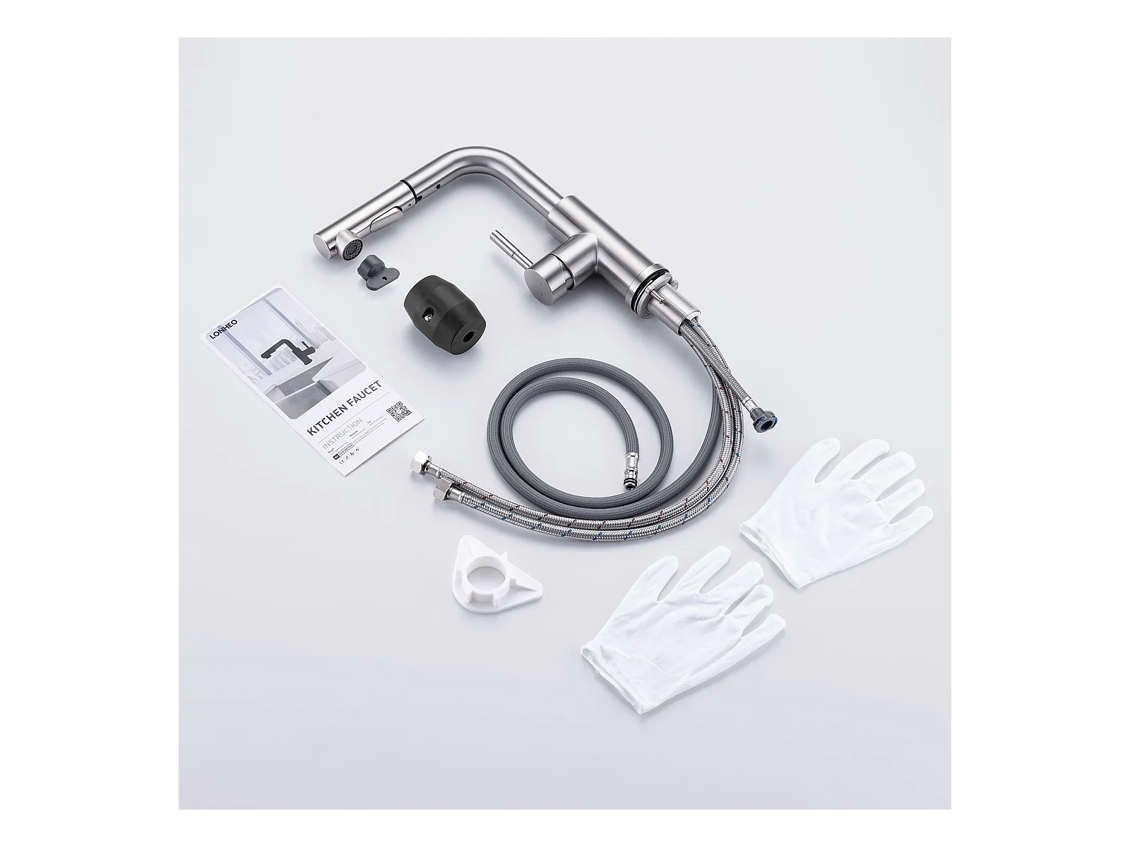 2PCS LONHEOMAX Rubinetto cucina 7-forma con 2 funzioni Doccia estraibile Miscelatore cucina in acciaio inossidabile con sguaina smontabile,Spazzolato
