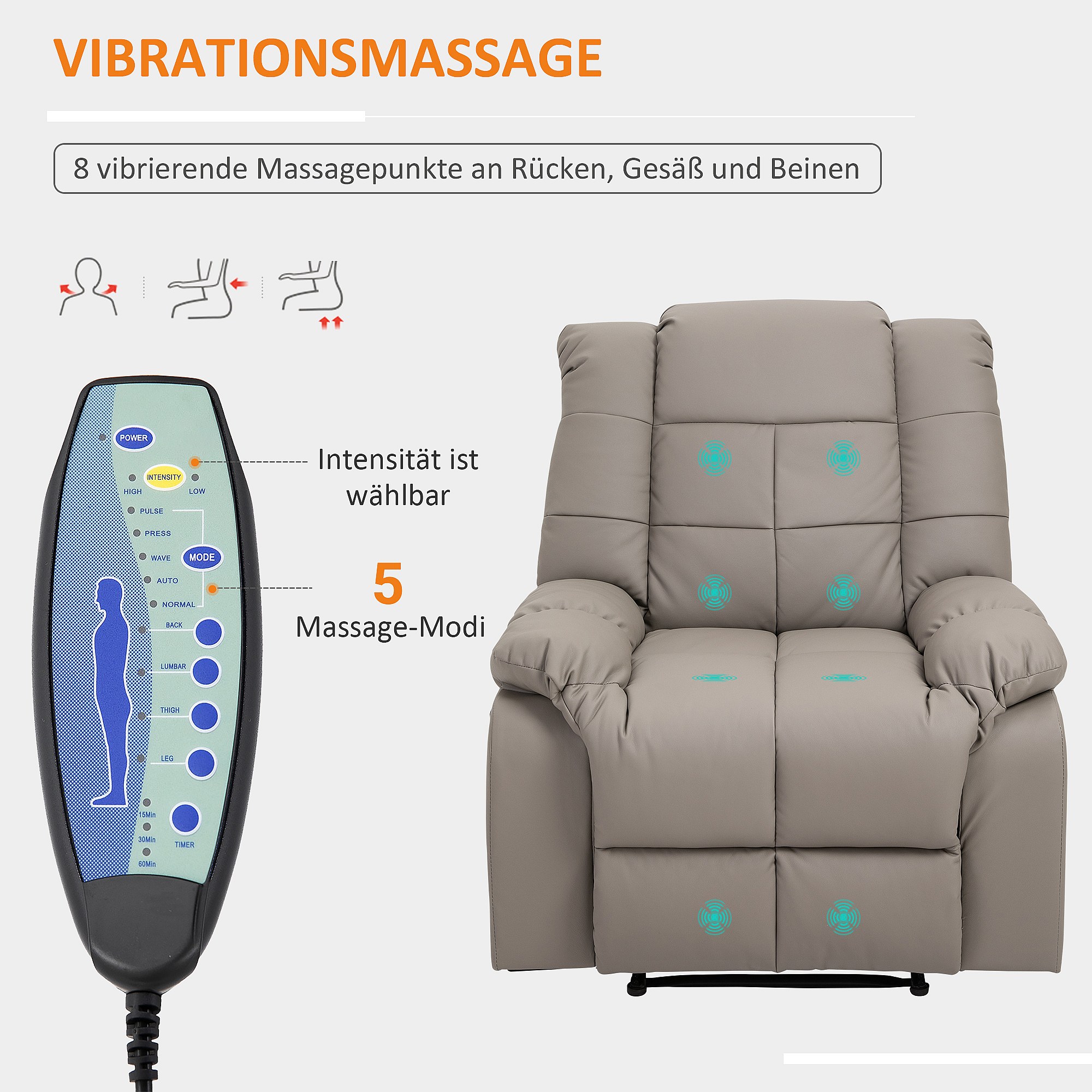 Sedia da massaggio PU ergonomica inclinabile con chauffage grigio 68x72x110-120cm
