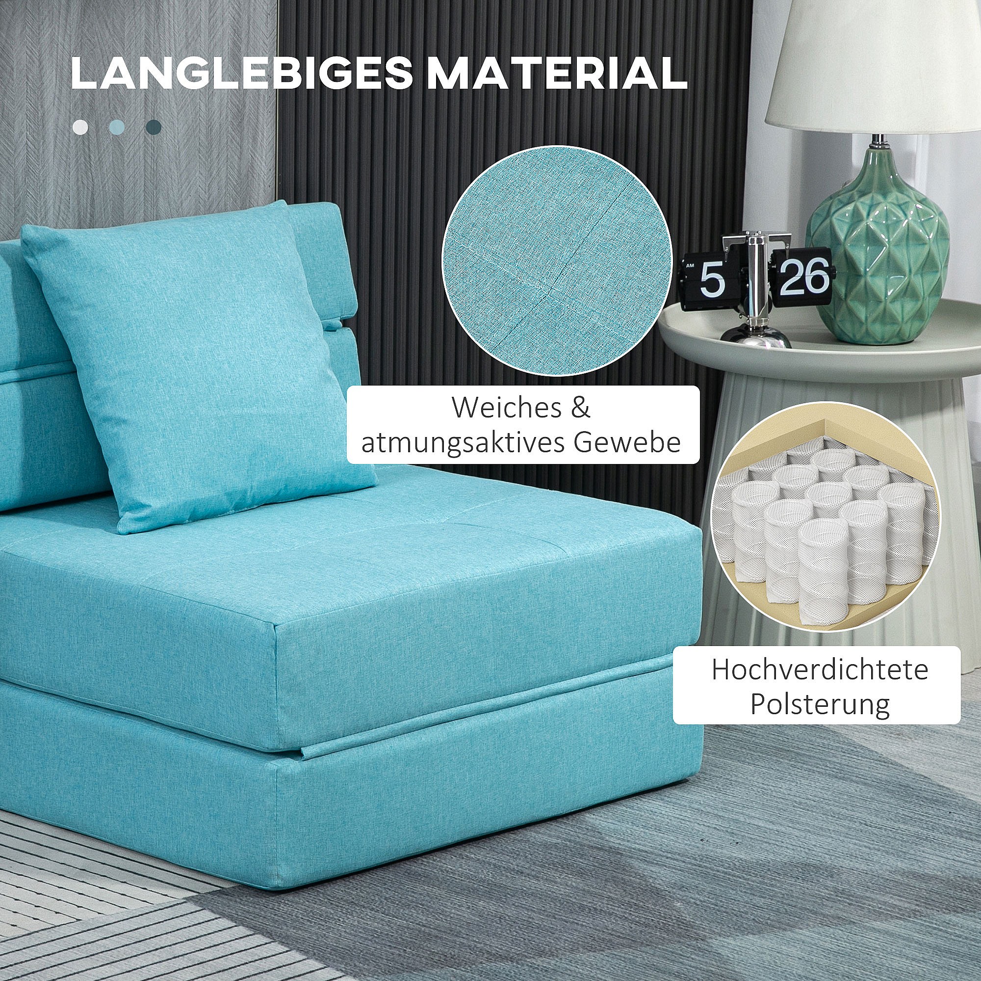 Polstersessel Convertible 2-en-1, Fauteuil Relax avec Lit Escamotable, Tissu, Salon et Chambre, Bleu, 80 x 75 x 83 cm