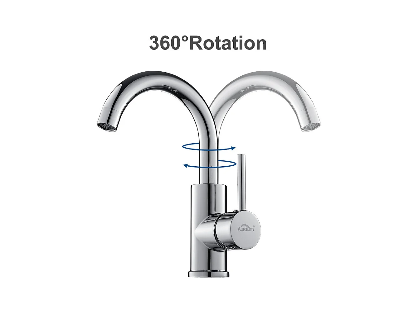 AuraLum Max Rubinetto Lavabo Bagno Forma a U Becco Alto Miscelatore Lavabo Cromato Lucido Rotante 360° Rubinetto Miscelatore Lavabo Moderno,Modello UE
