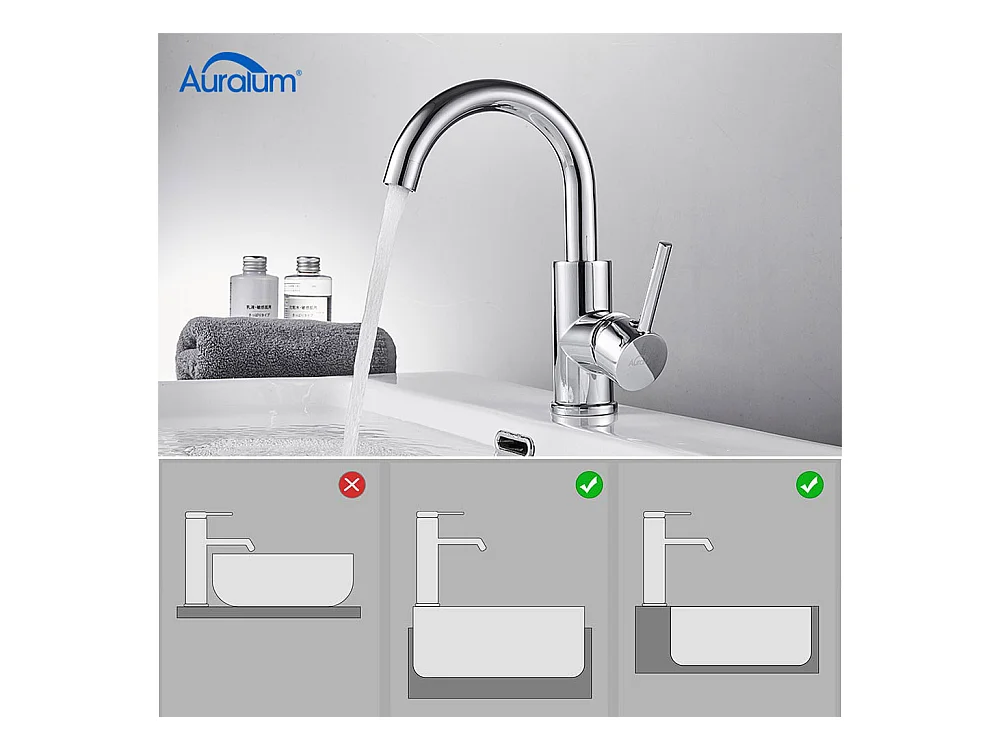 AURALUM MAX Rubinetto per lavabo Bagno Cromato Bocca Alta Girevole a 360°+Porta Asciugamani Bagno Adesivo/Foratura,Portasciugamani Parete, Spazzolato