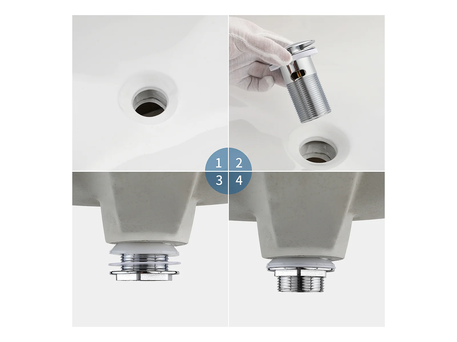 Auralum MAX Miscelatore per lavabo senza tirante di scarico, rubinetto bagno cromato+Bonde Lavabo Bonde Pop-up con troppopieno automatico universale