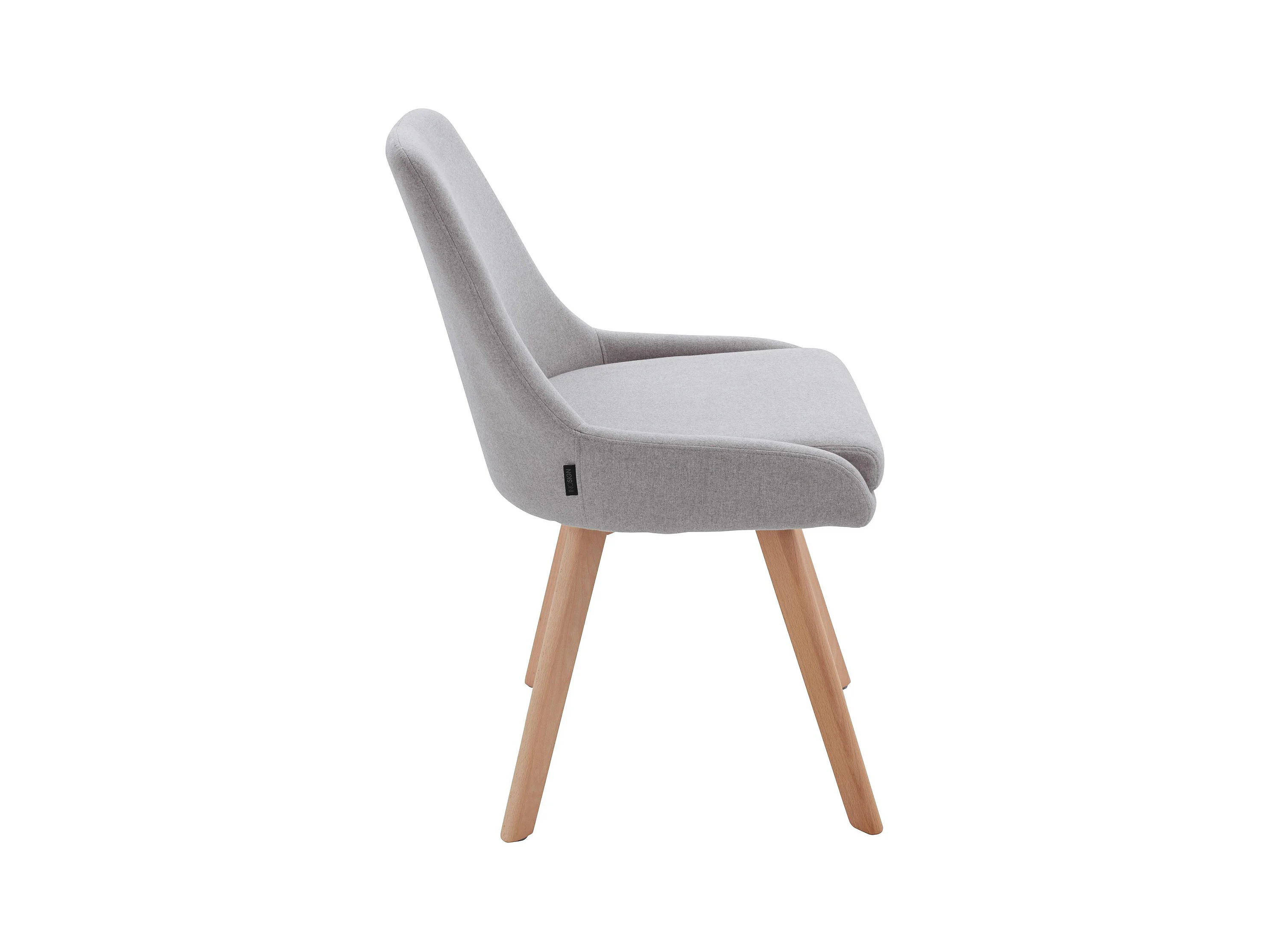 Sedia da pranzo Bali in tessuto grigio chiaro e gambe in rovere massello.