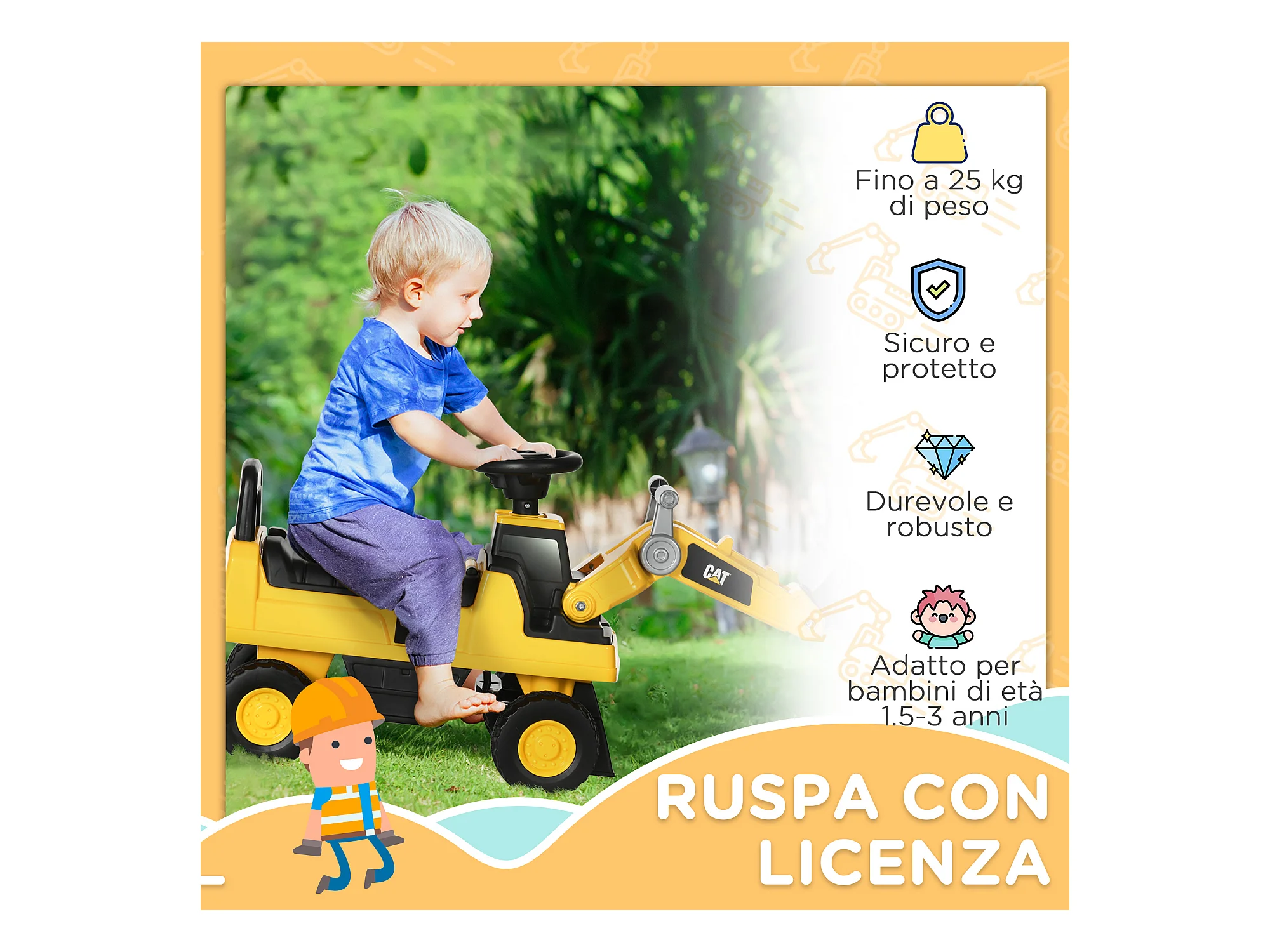 Ruspa giocattolo età 18 e 36 mesi con escavatore e vano a scomparsa
