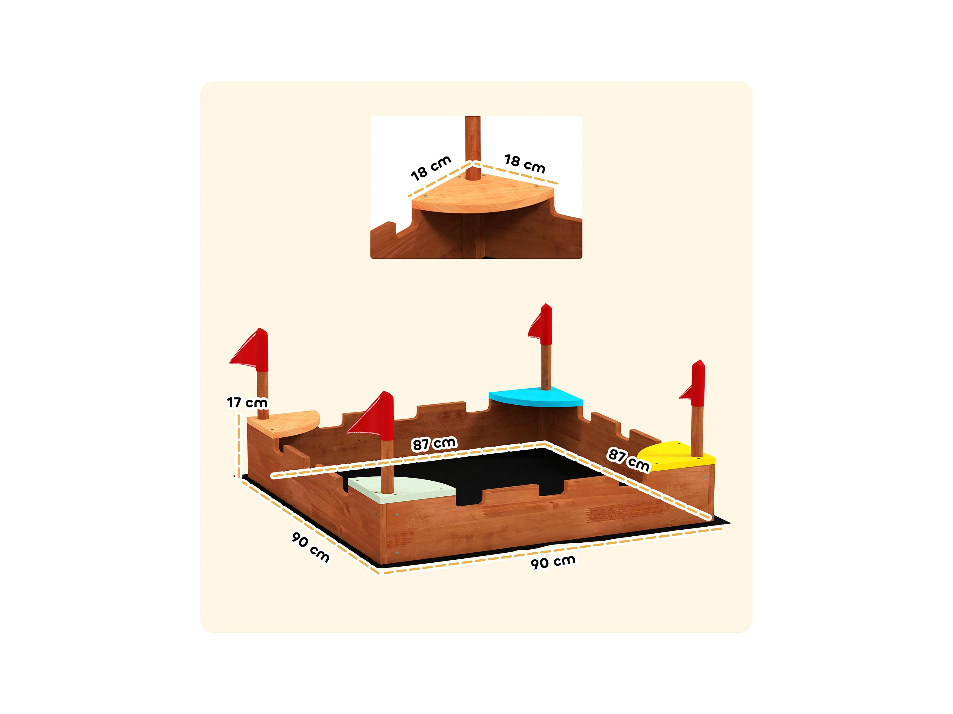 Sabbiera per bambini 3-7 anni a forma di castello in legno di abete