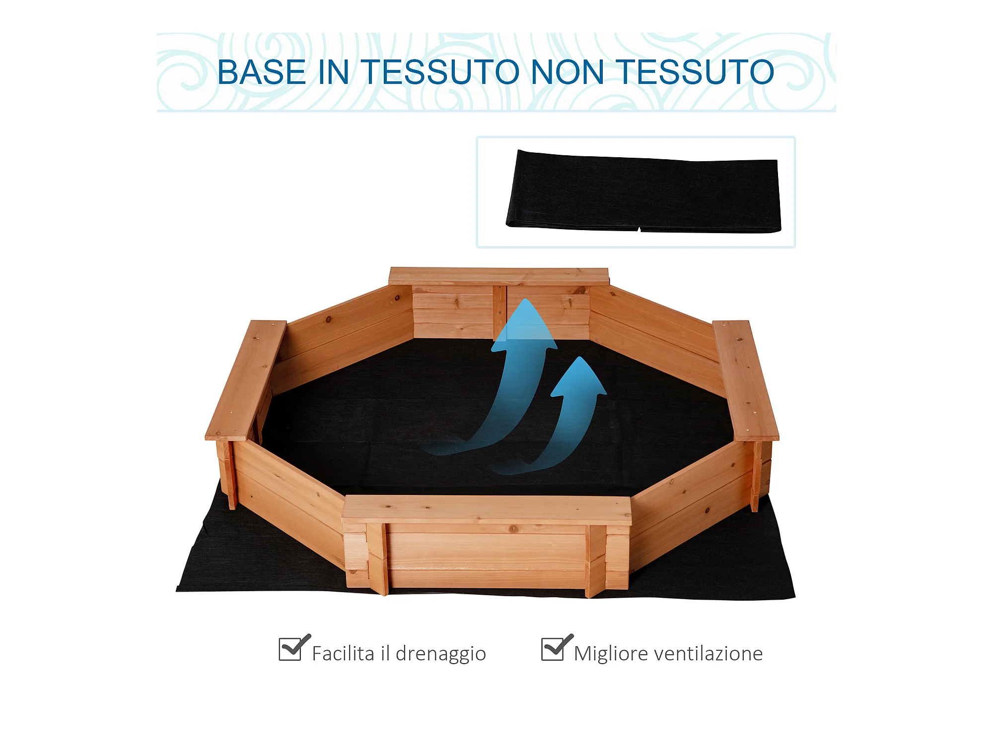 Sabbiera in Legno, SucceBuy Sabbiera in Legno con Coperchio Sabbiera Ottagonale Sabbiera per Esterni 3-12 Anni