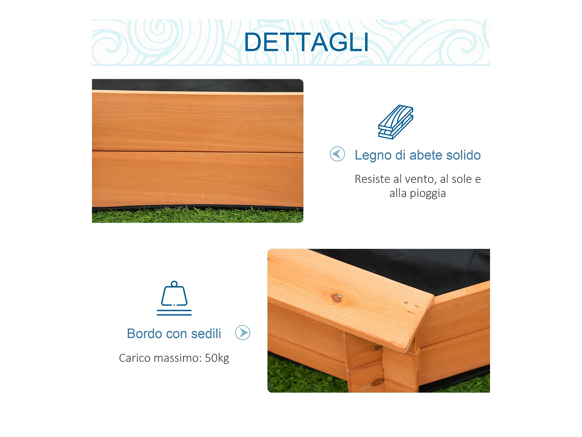 Sabbiera per bambini 4 posti in legno di abete con fodera
