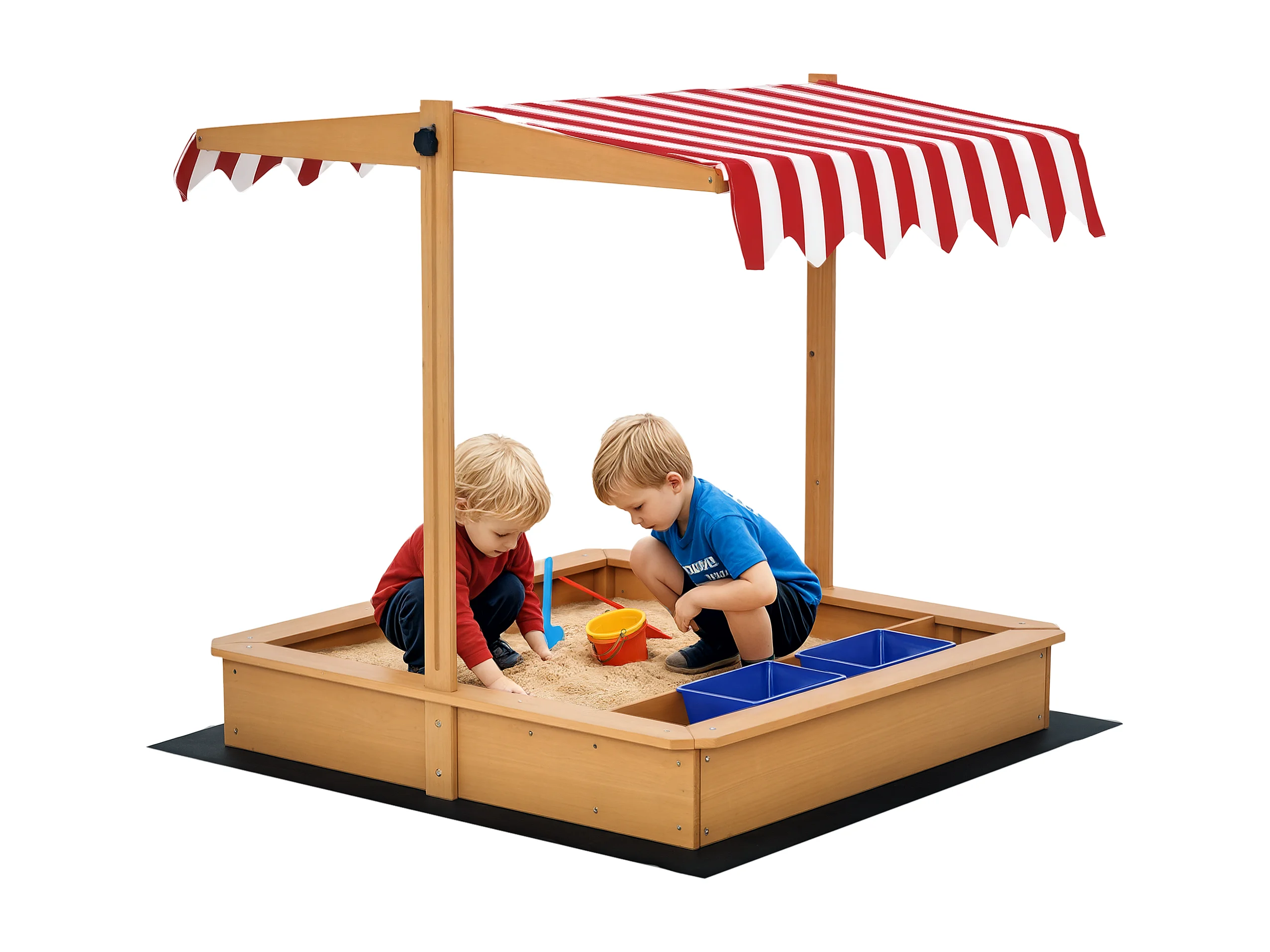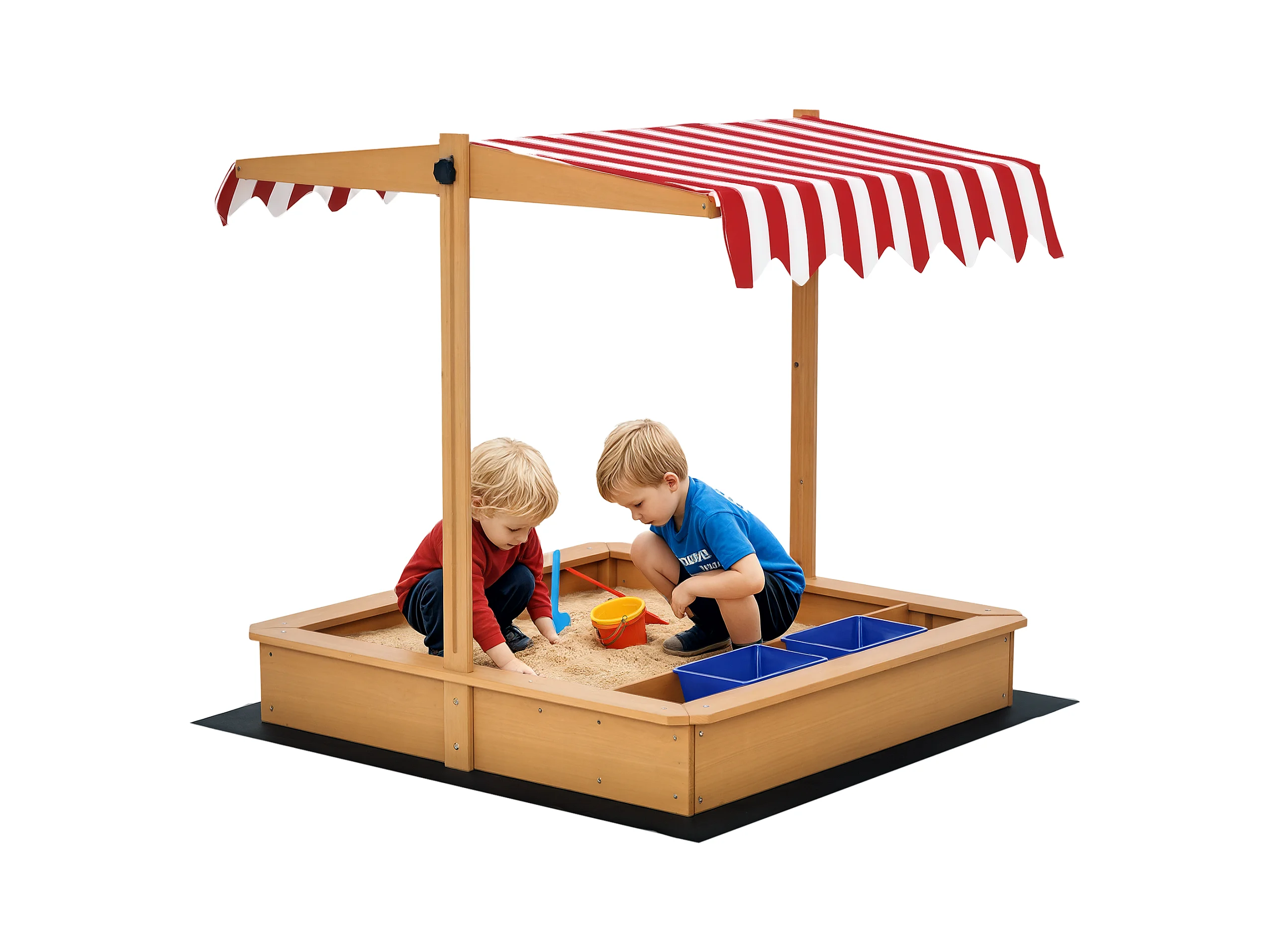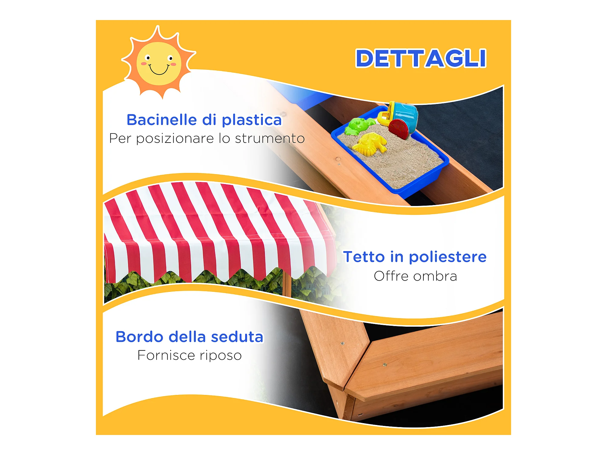 Sabbiera per bambini in legno con tettuccio regolabile e vaschette