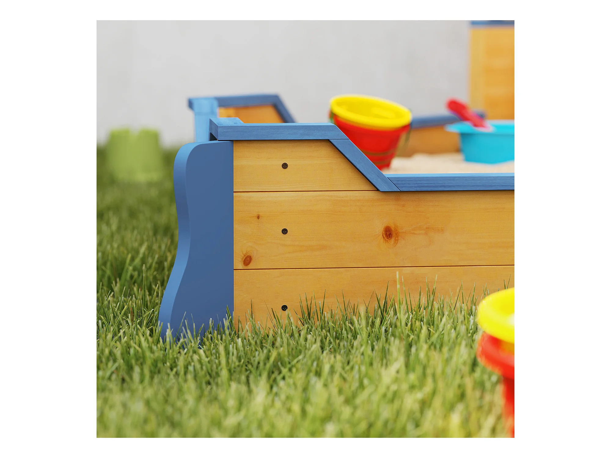 Sabbiera per bambini 3-6 anni con sedute angolari in legno blu