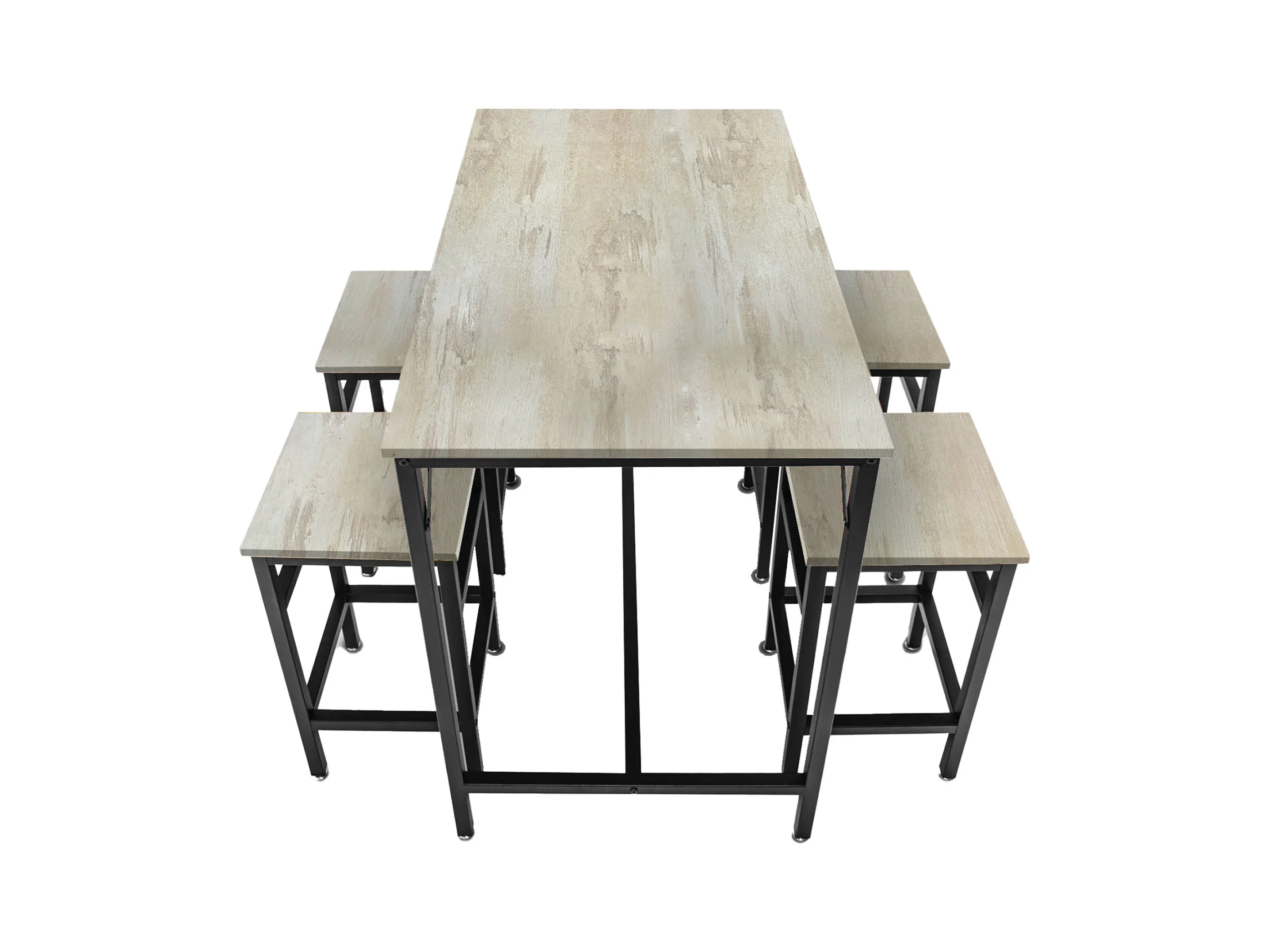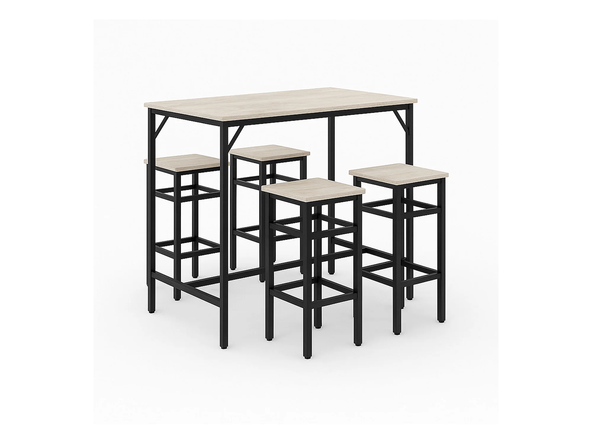 Sabi - Tavolo bar con 4 sgabelli quadrati in stile industrial bleach, set angolo breakfast