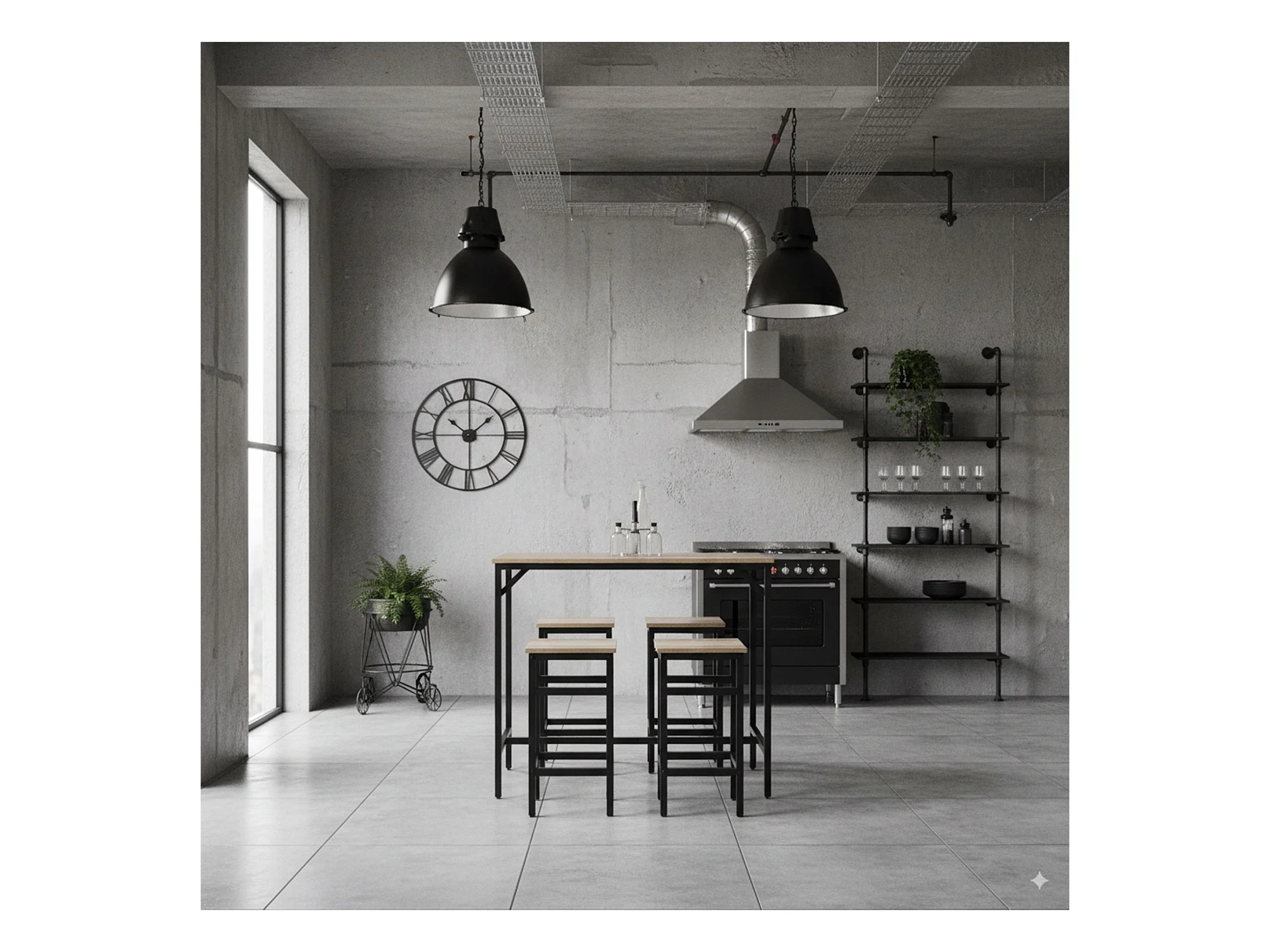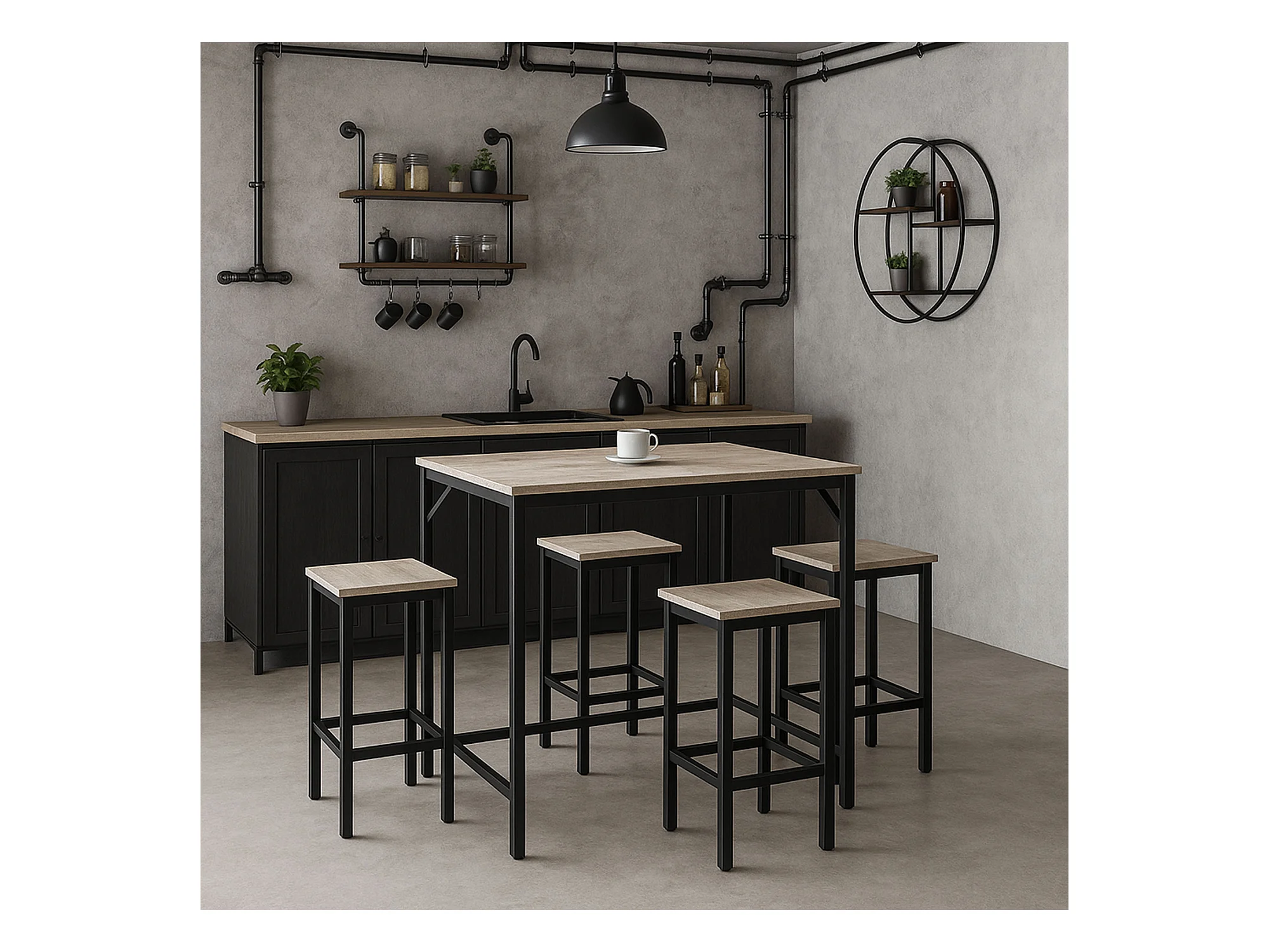 Sabi - Tavolo bar con 4 sgabelli quadrati in stile industrial oak, set angolo breakfast
