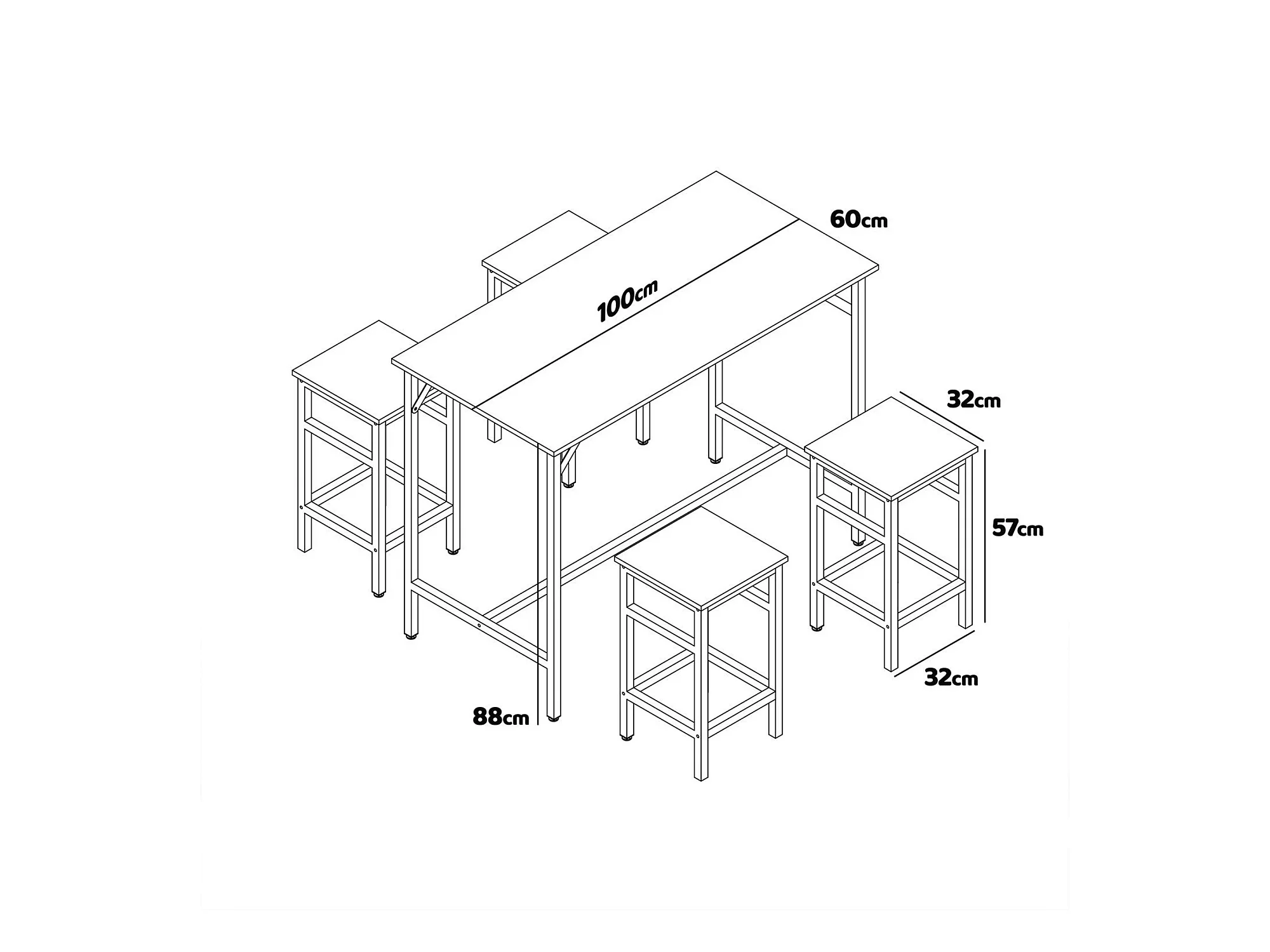 Sabi - Tavolo bar con 4 sgabelli quadrati in stile industriale, set angolo breakfast