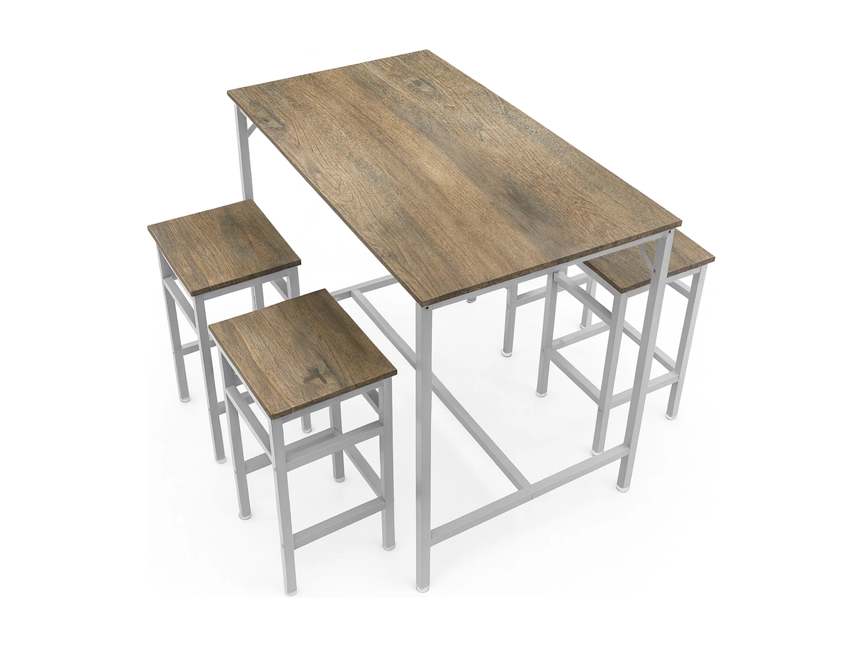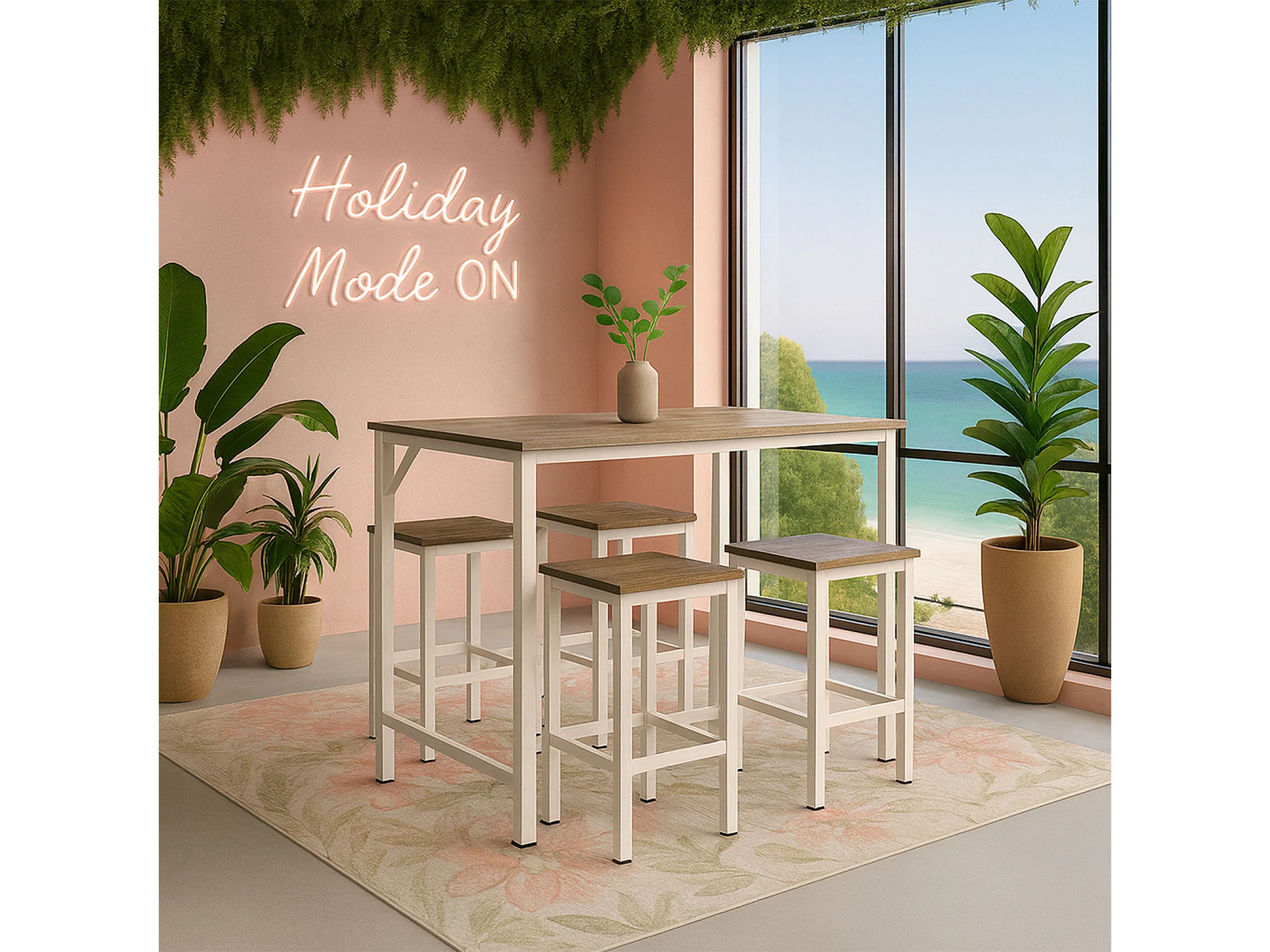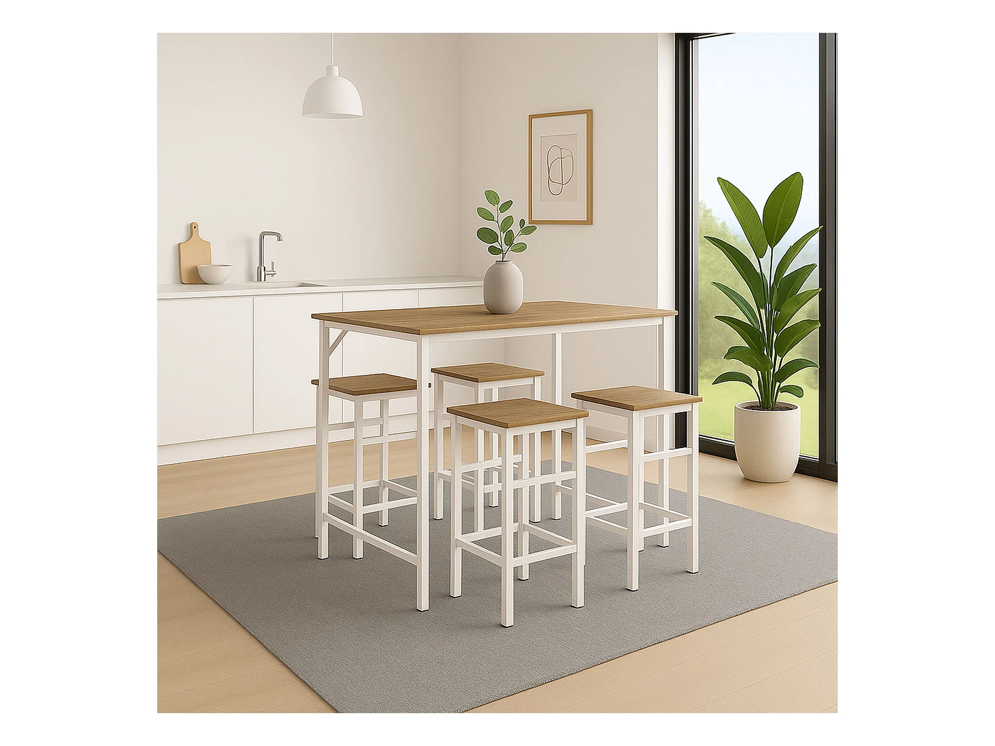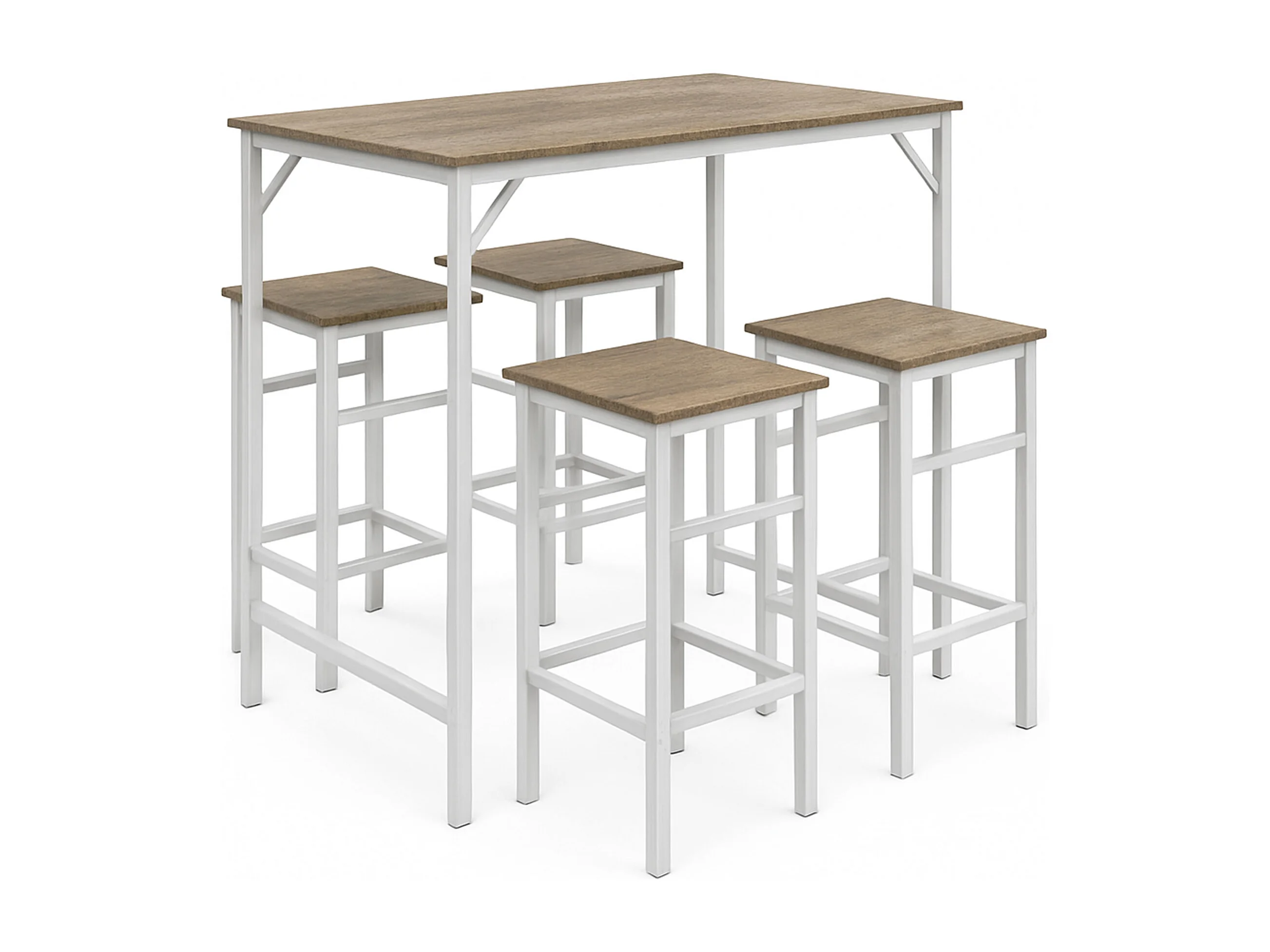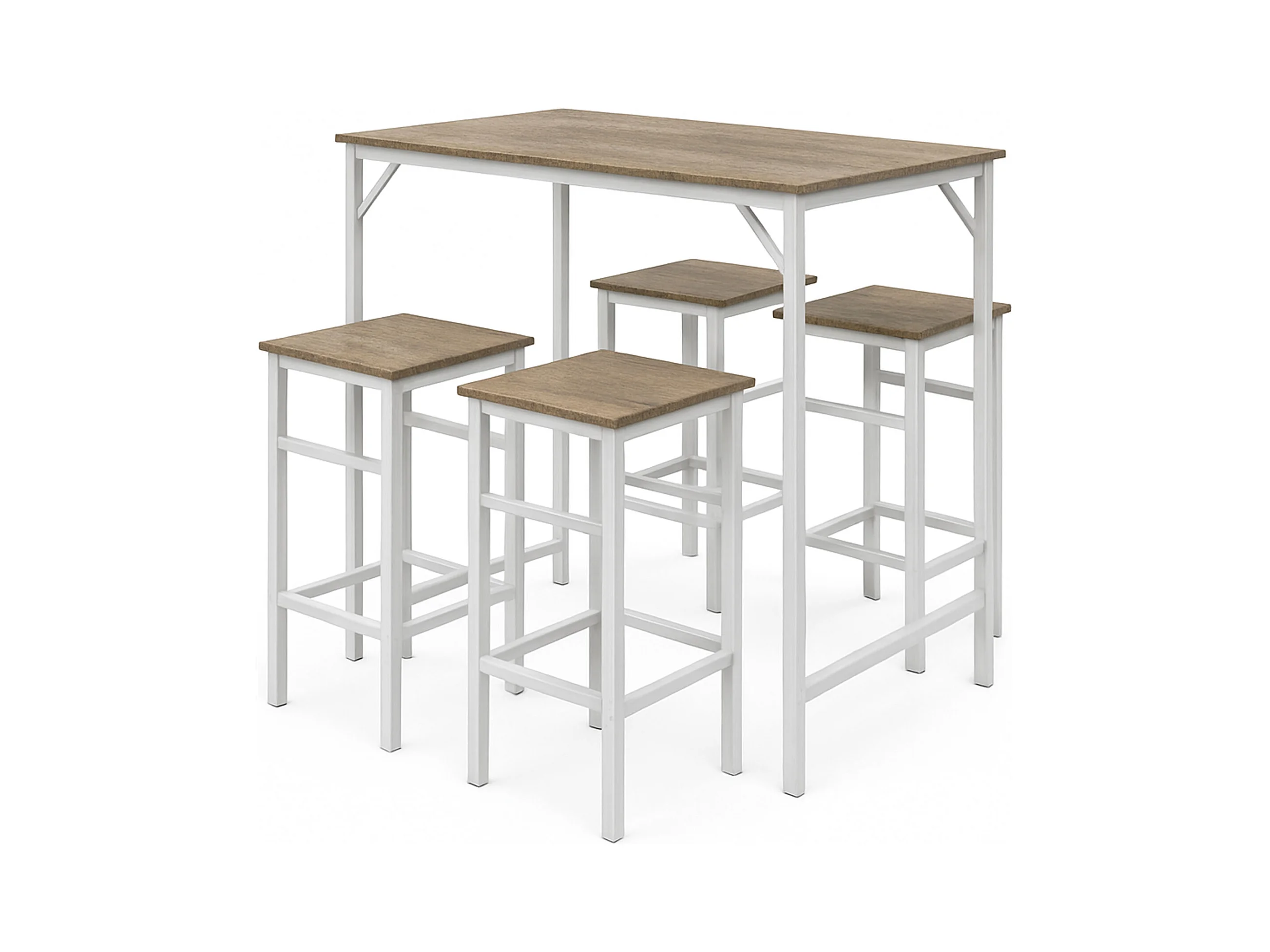 Sabi - Tavolo bar con 4 sgabelli quadrati in stile industrial bleach, set angolo breakfast