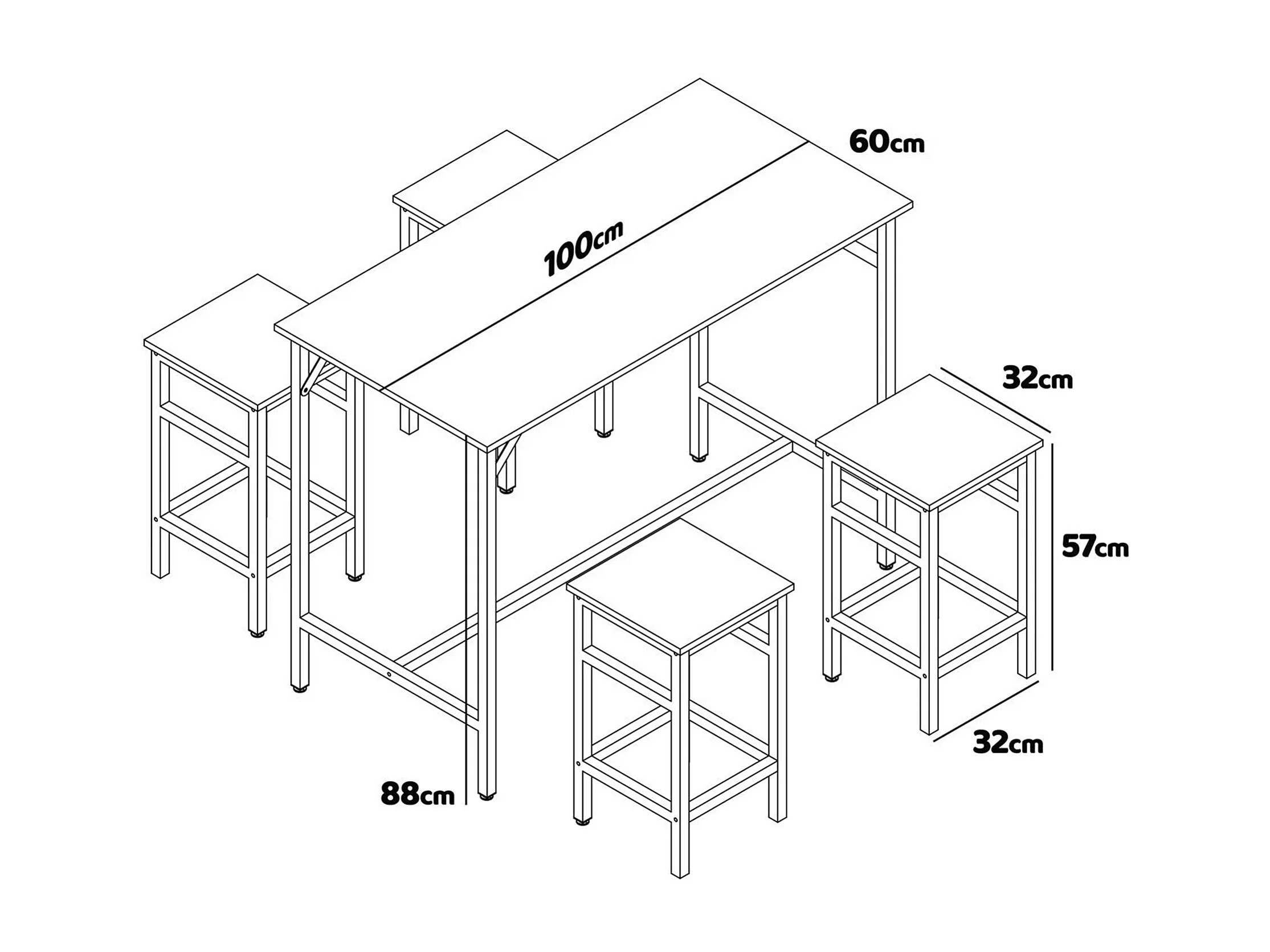 Sabi - Tavolo bar con 4 sgabelli quadrati in stile industriale, set angolo breakfast