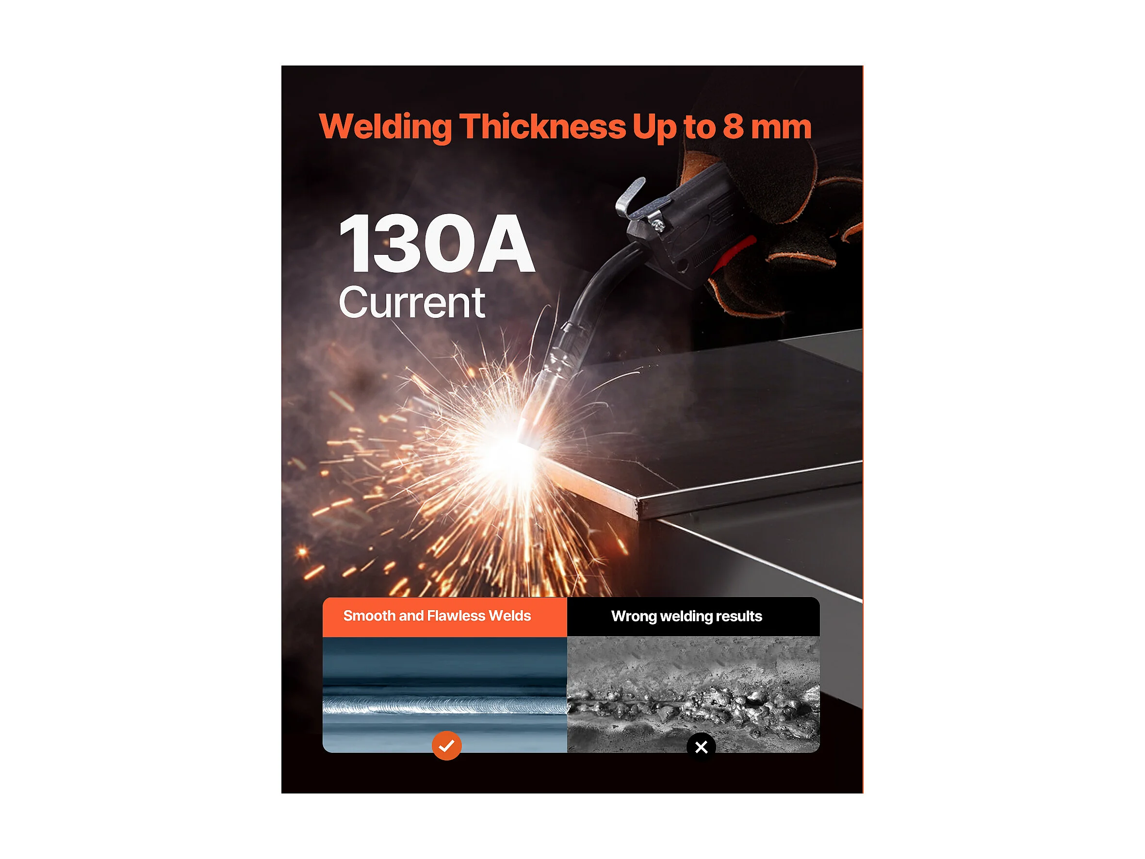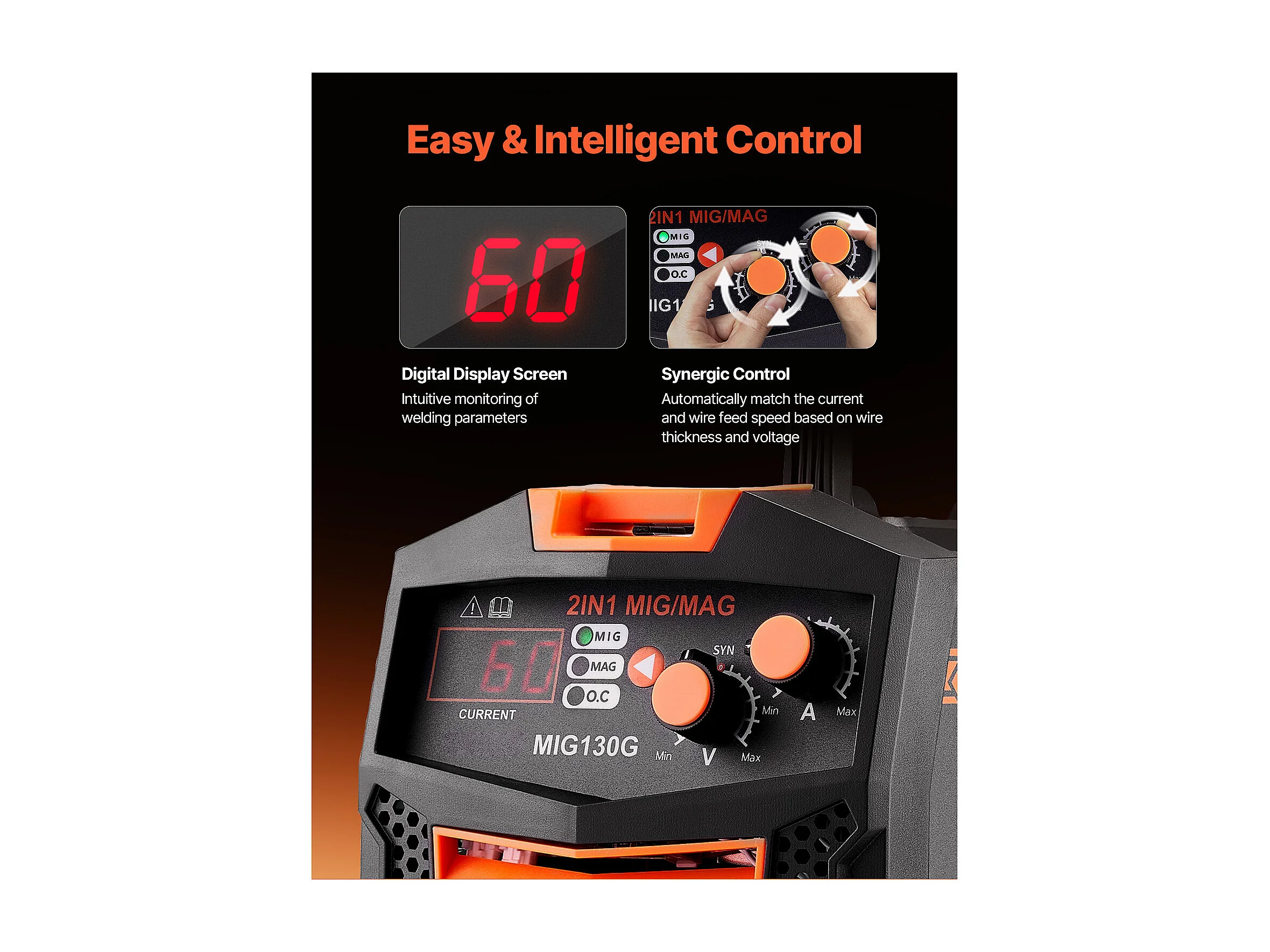 Saldatrice MIG SucceBuy 130A Saldatrice MIG a Filo Animato senza Gas, Saldatrice MIG Inverter IGBT Portatile con Display Digitale