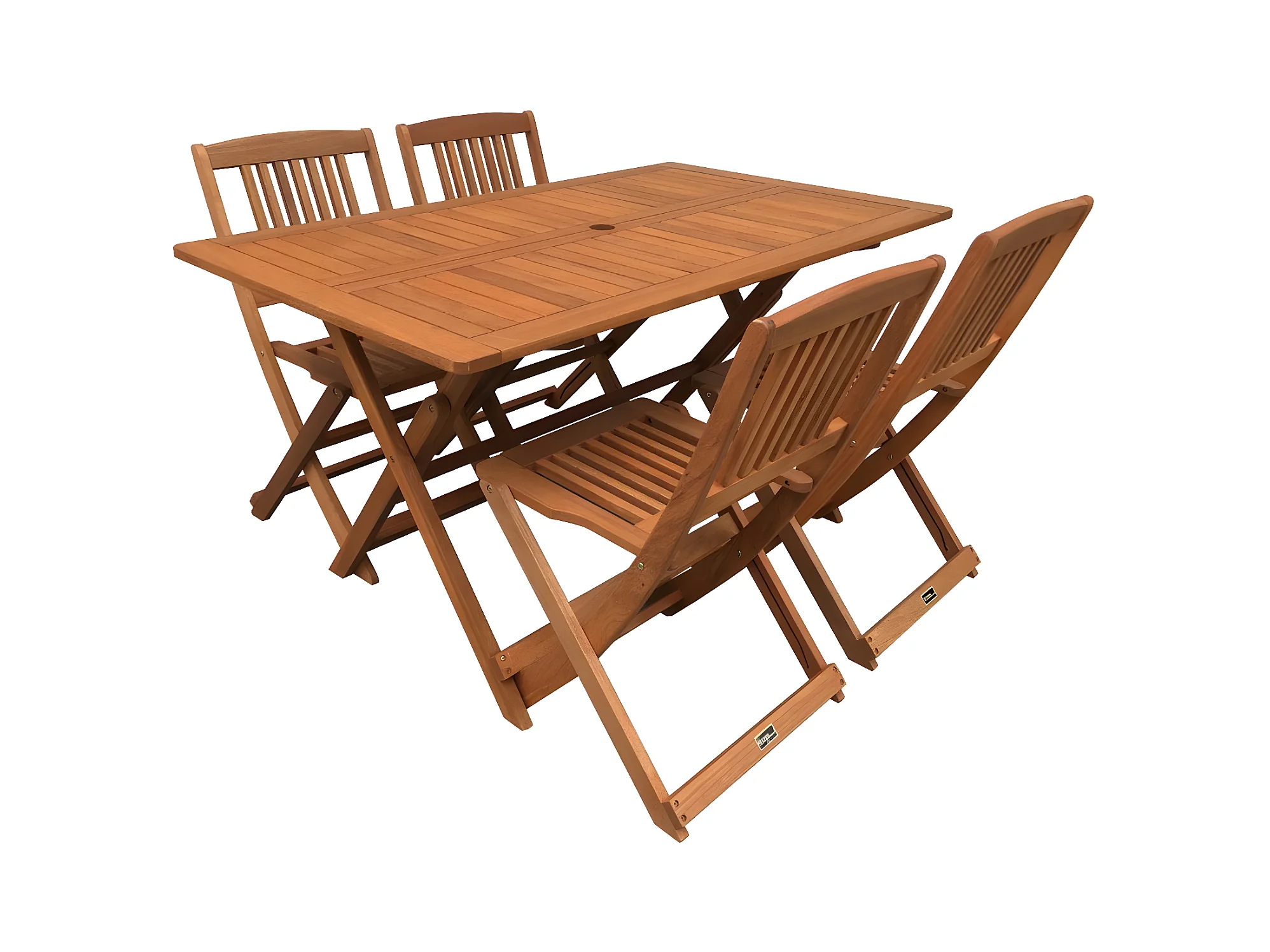 Set tavolo con 4x sedie pieghevoli da esterno MCW-J40 acciaio legno di acacia marrone