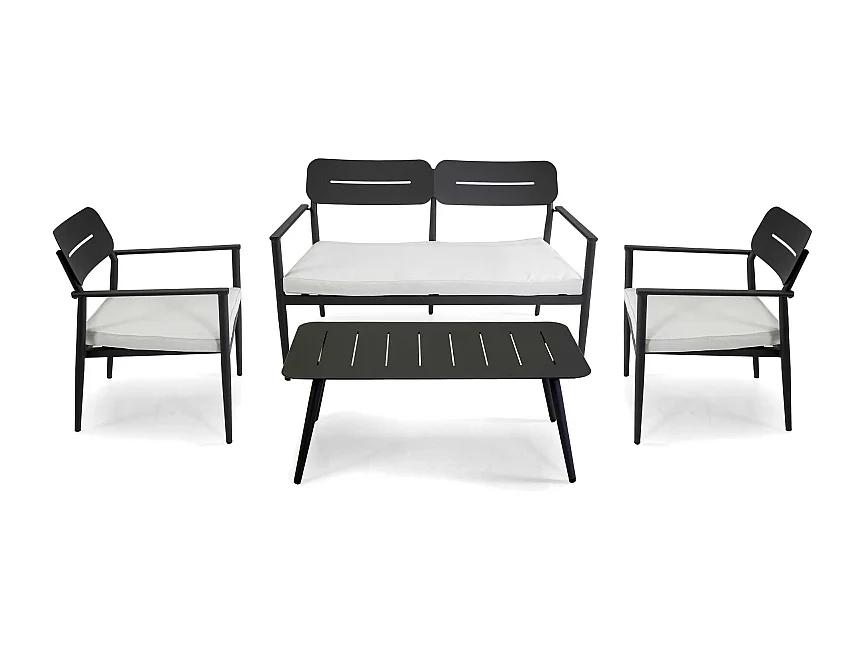 Salotto alluminio Ibiza 2 posti antracite con cuscini crema