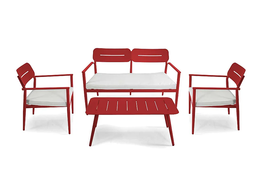 Salotto alluminio Ibiza 2 posti rosso terracotta con cuscini crema