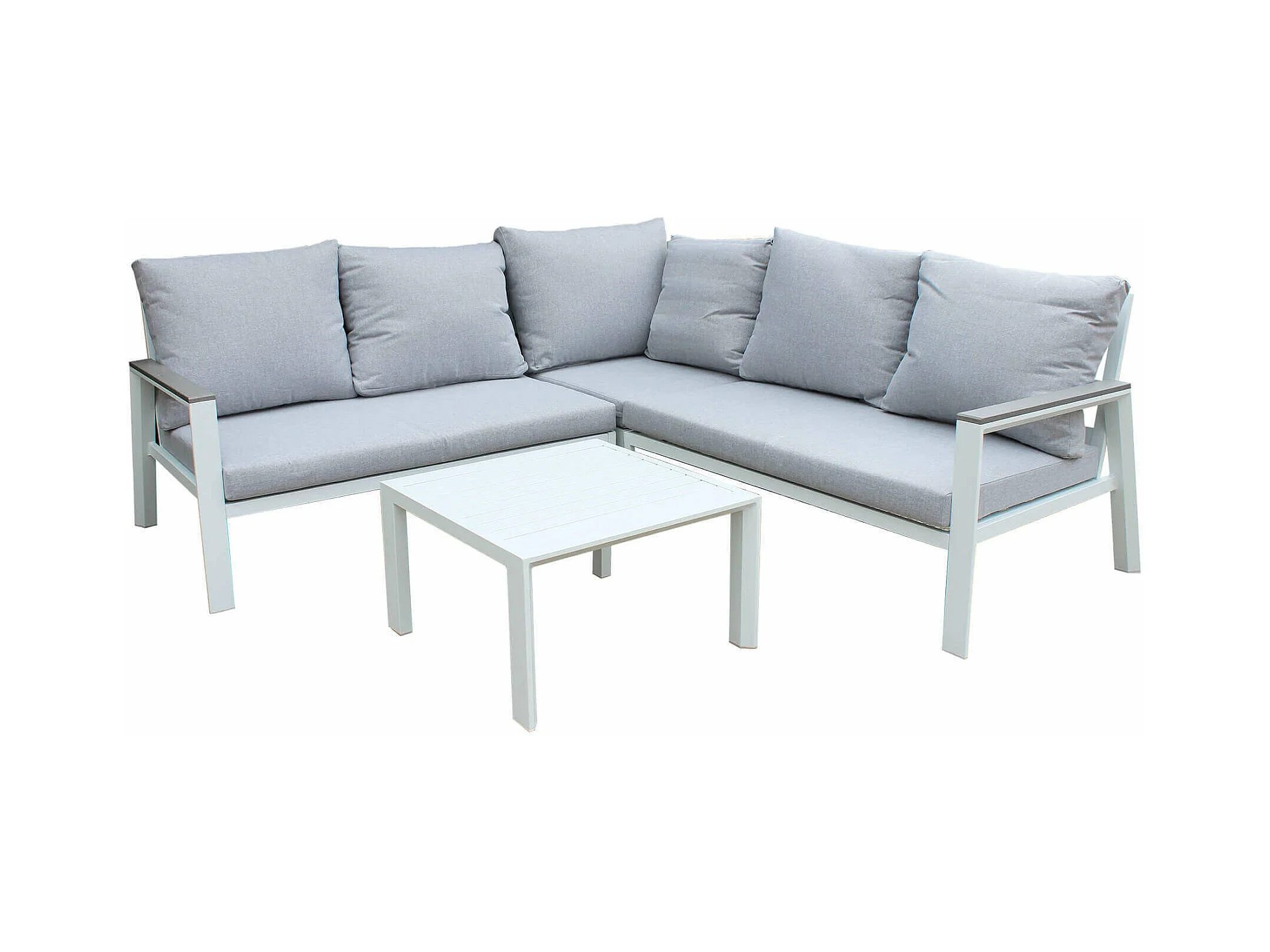 MilaniHome.it - Salotto da Giardino in Alluminio con Cuscini in Poliestere e Tavolino Rettangolare in Color Biancodi coloreBianco