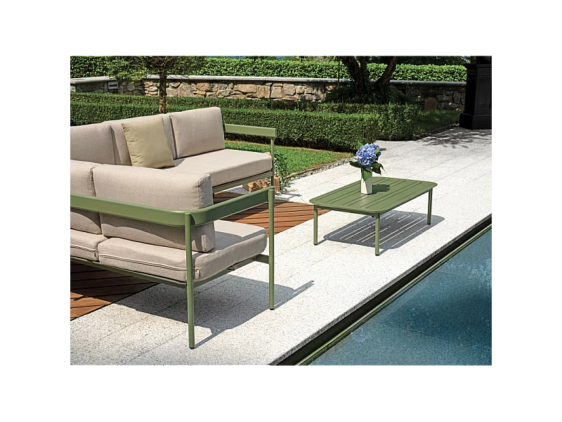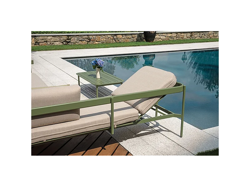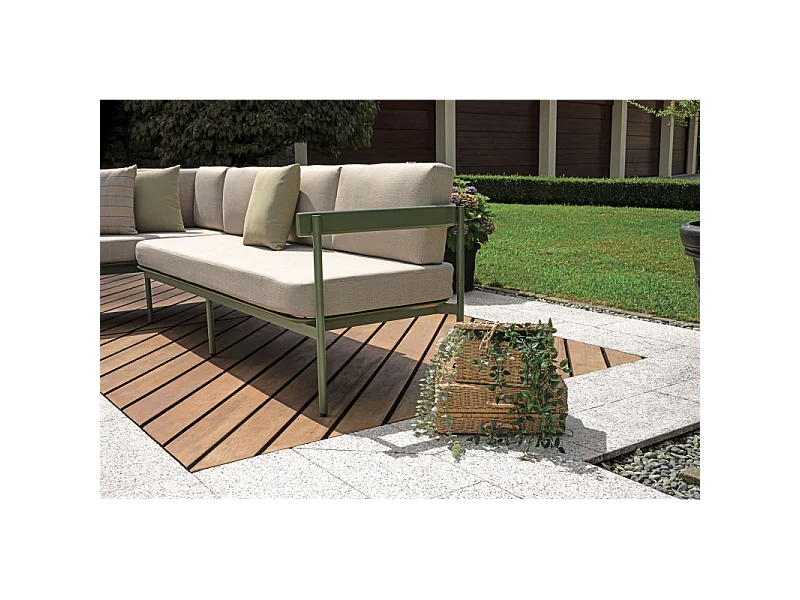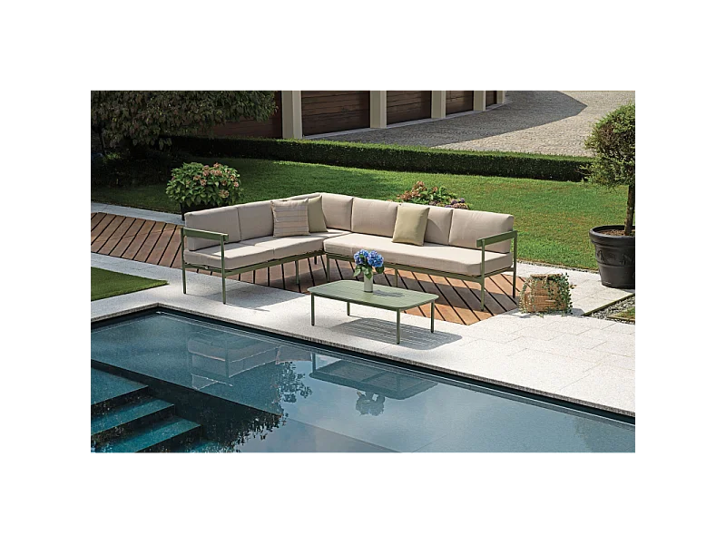 Salotto Angolare Torvaianica In Alluminio Verde- Divano Convertibile In Lettino - Due Pillow Verdi E Uno A Righe Moia