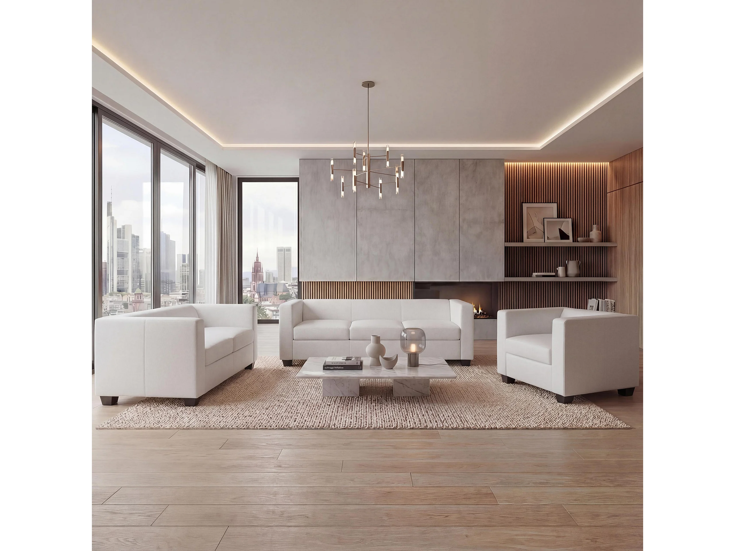 Salotto componibile lounge moderno elegante Lille M65 composizione 3-2-1 ecopelle bianco