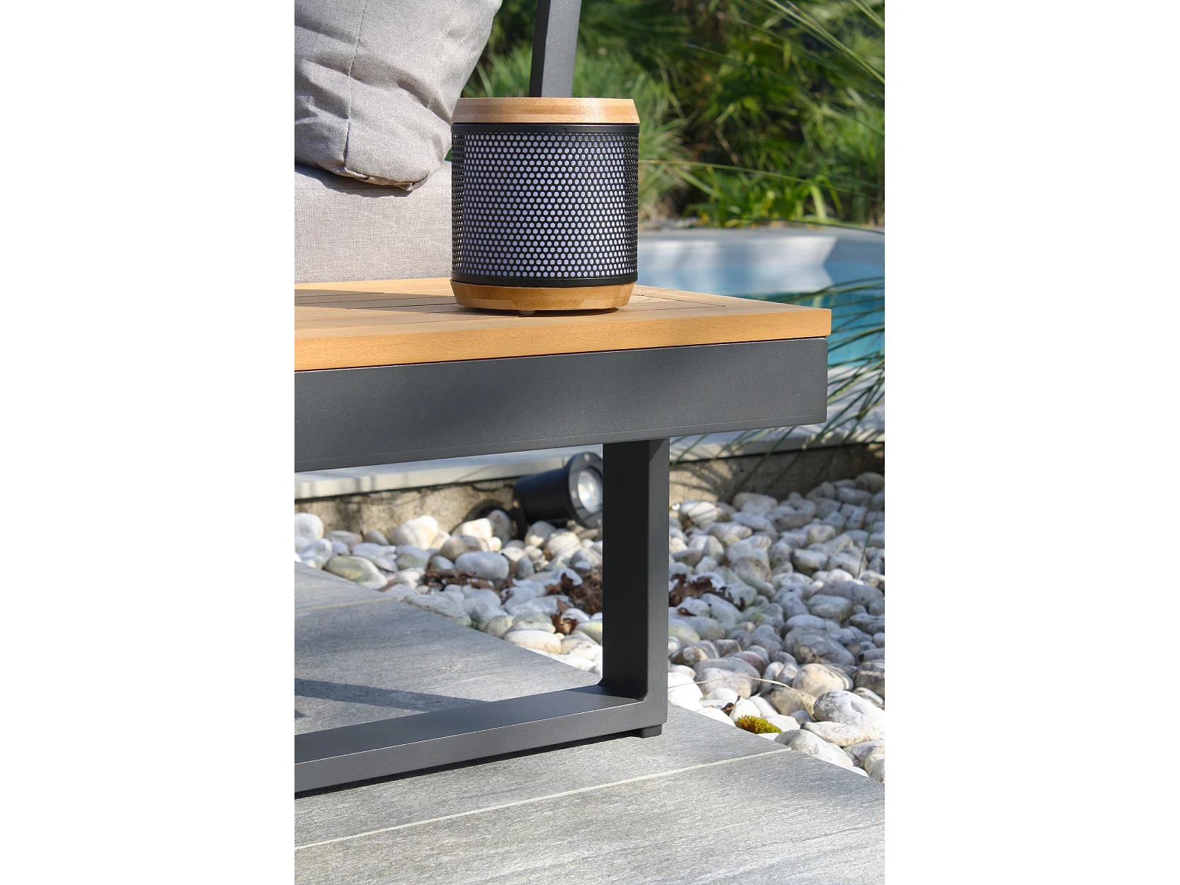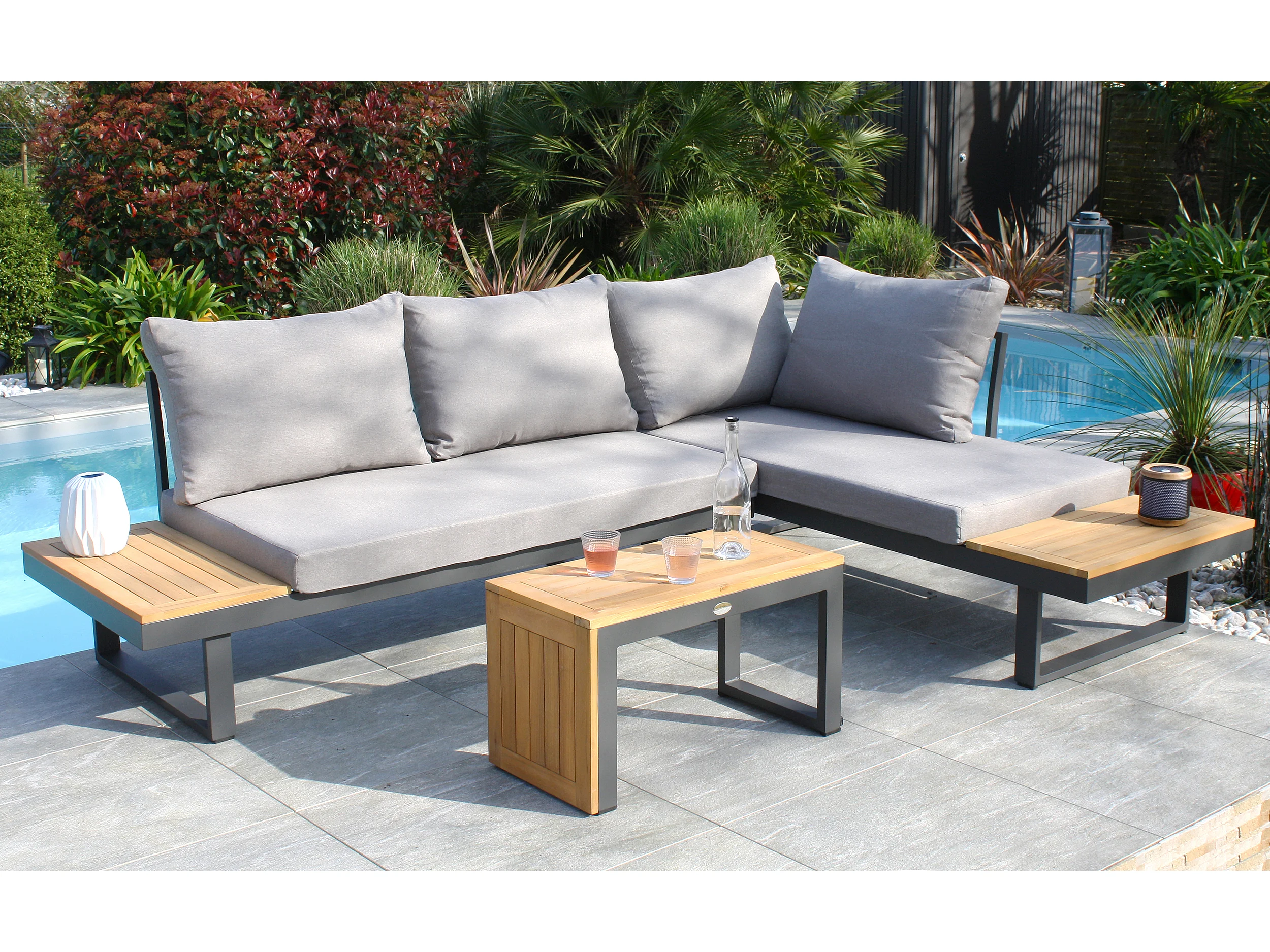 Salotto da giardino 4 posti in legno di acacia e alluminio