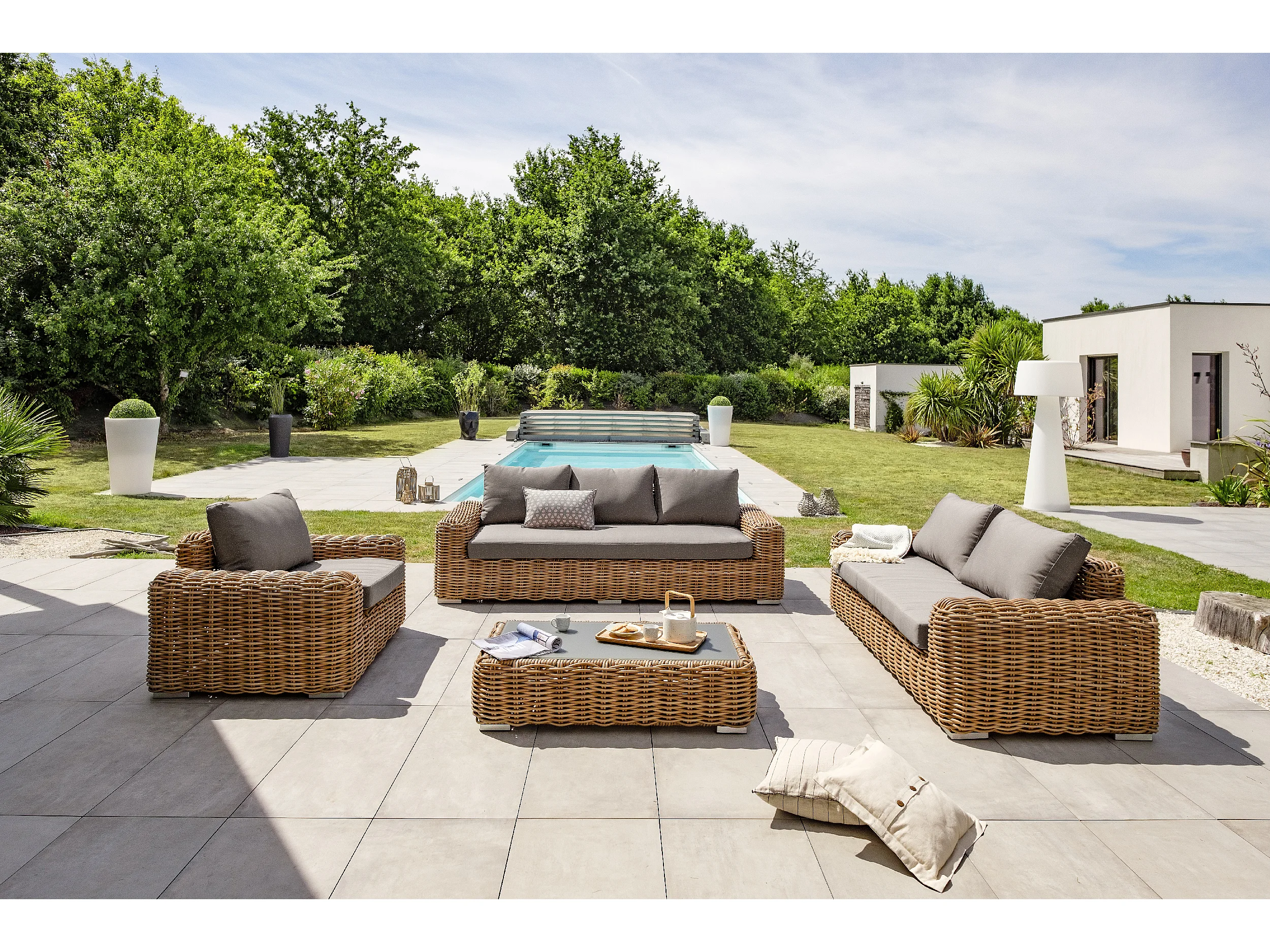 Salotto da giardino 5 posti in resina intrecciata