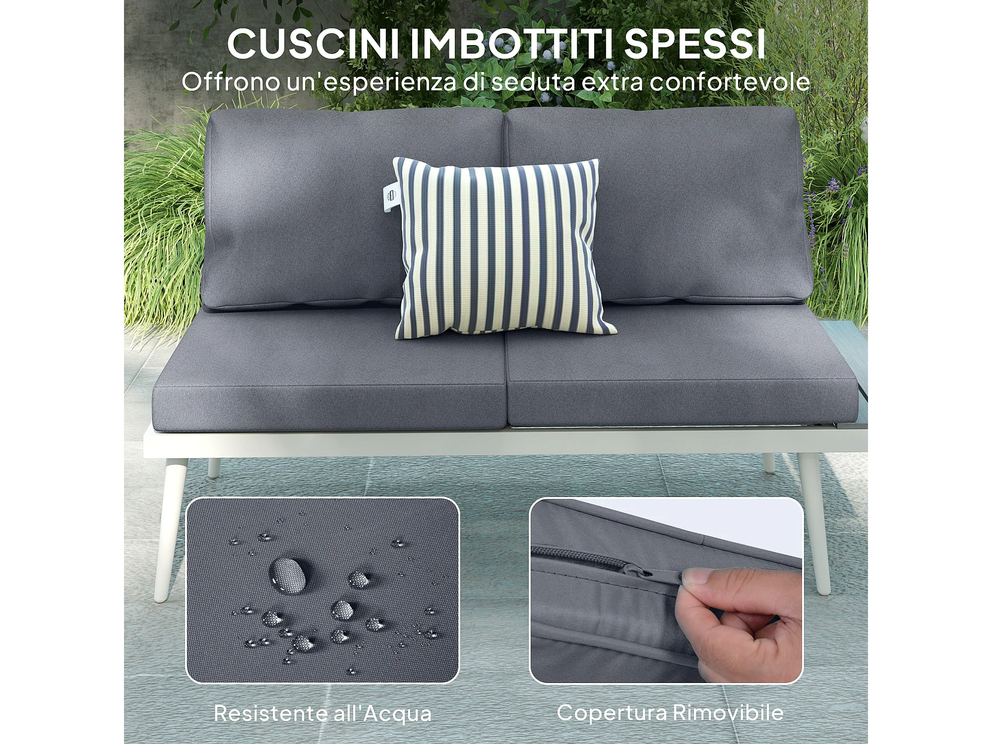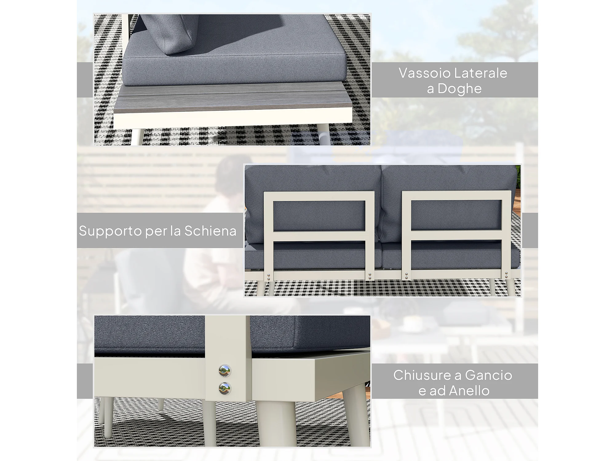 Salotto da giardino con 2 divani con schienale regolabile e tavolino