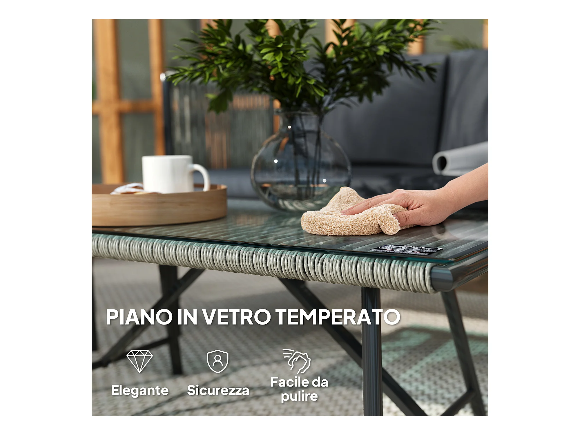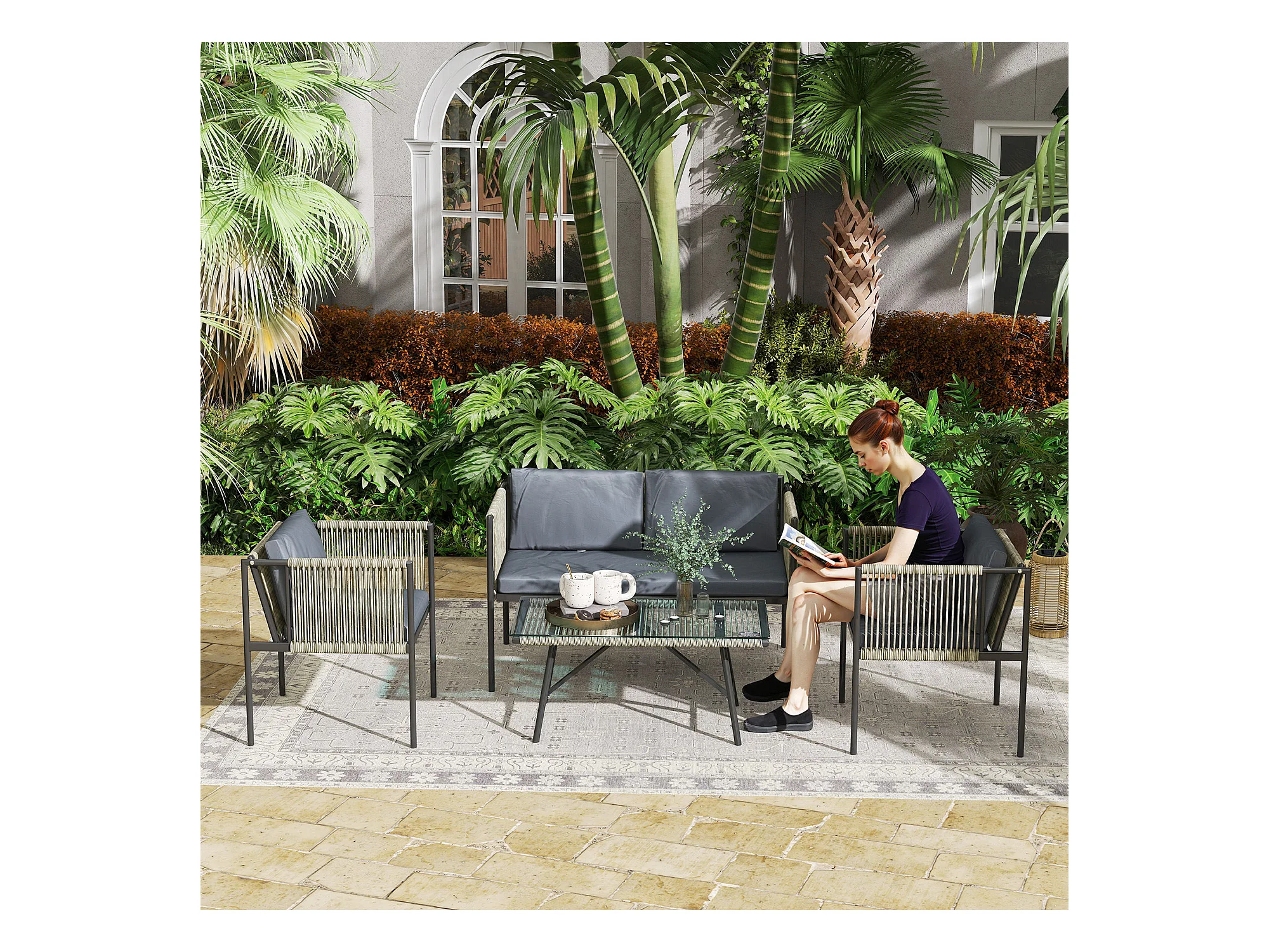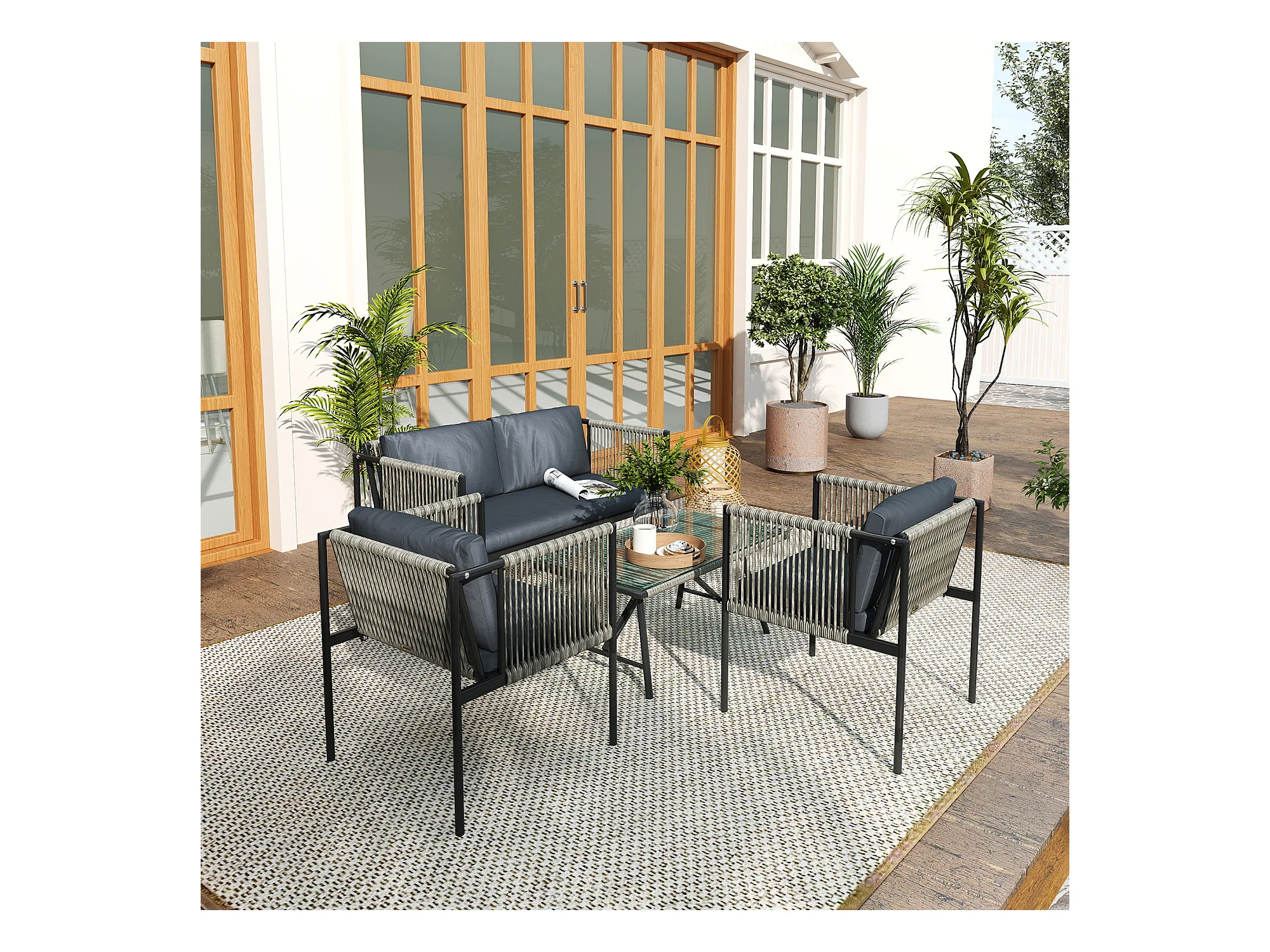 Set da giardino 2 divani poltrona angolare e tavolino basso