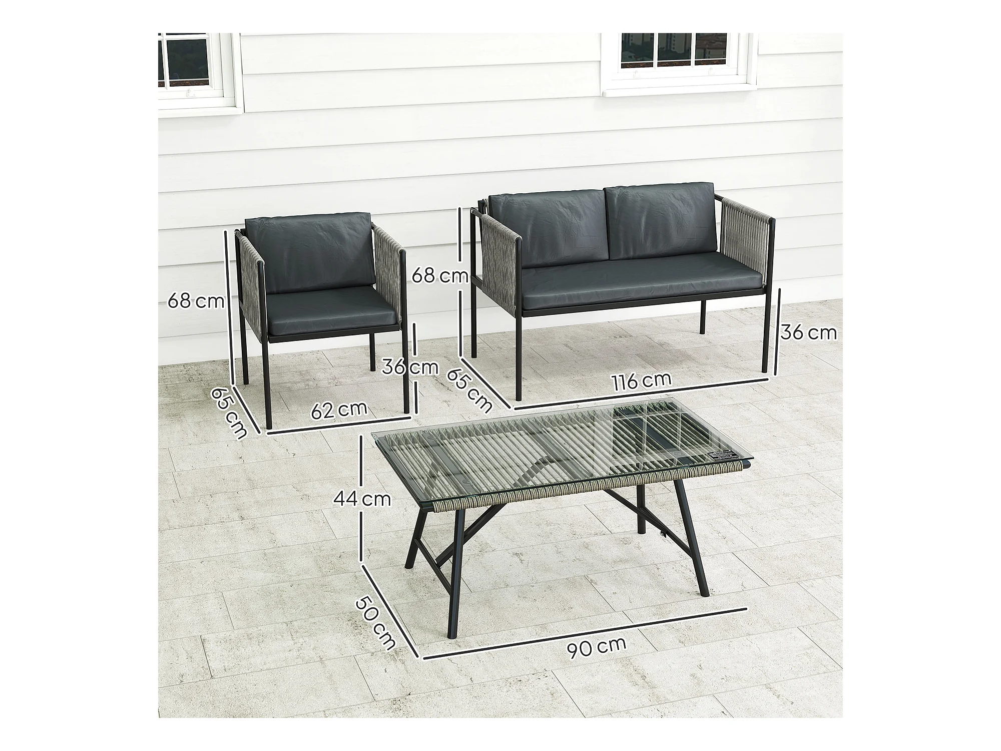 Salotto da giardino con 2 poltrone divano e tavolino in rattan grigio