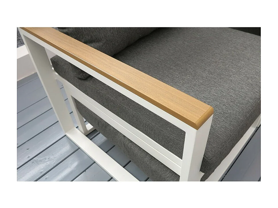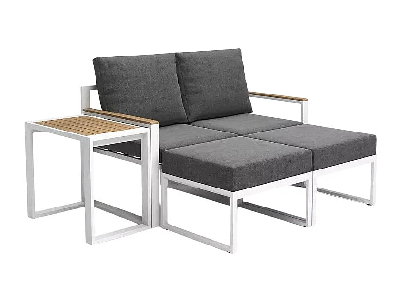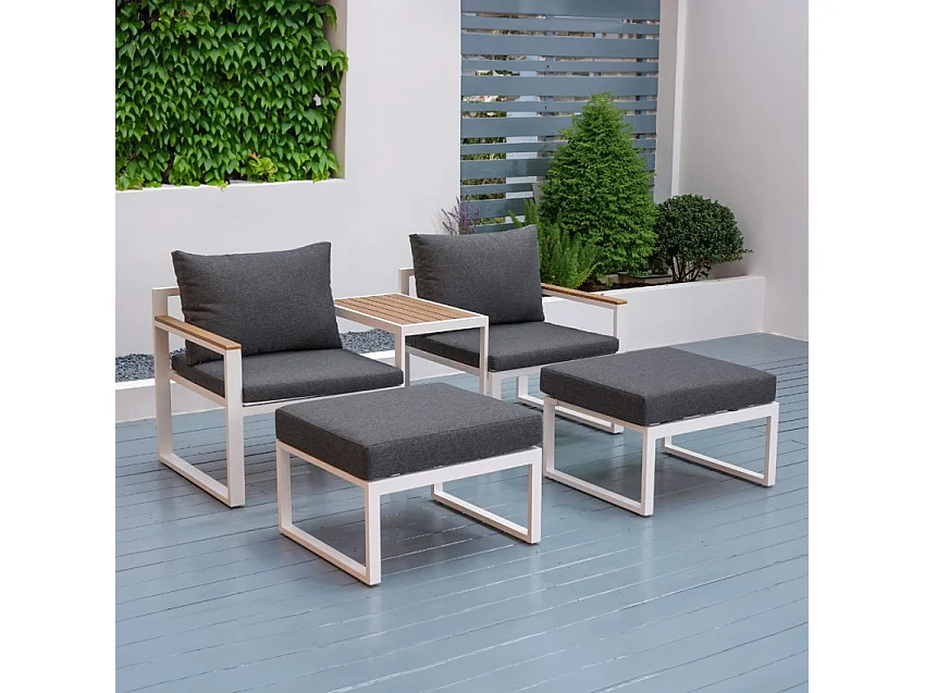 Ikigai - Set Salotto da Giardino Divano 3 Posti 2 Poltrone e Tavolino con Cuscini in Alluminio e Legno Plywood