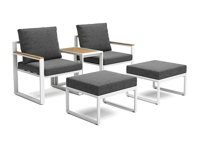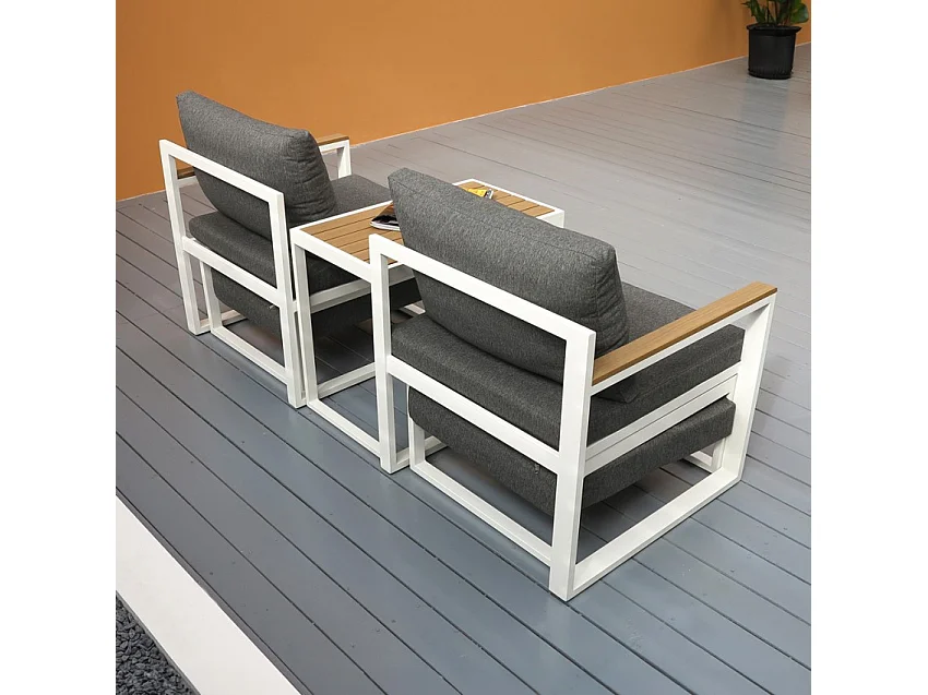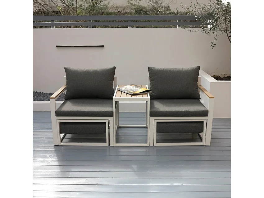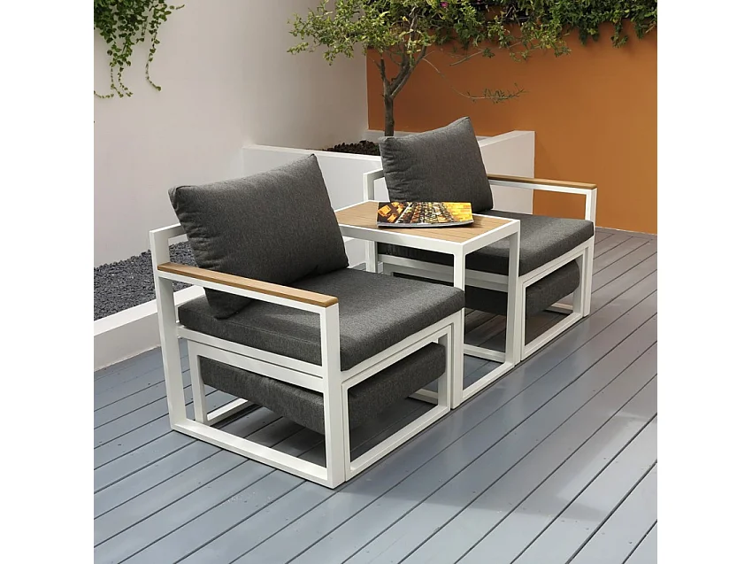 Salotto da giardino con 2 poltrone poggiapiedi e tavolino Eden