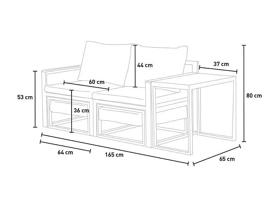 Rugiada - Set salotto da esterno in alluminio con cuscini - 2 poltrone, divano e tavolino