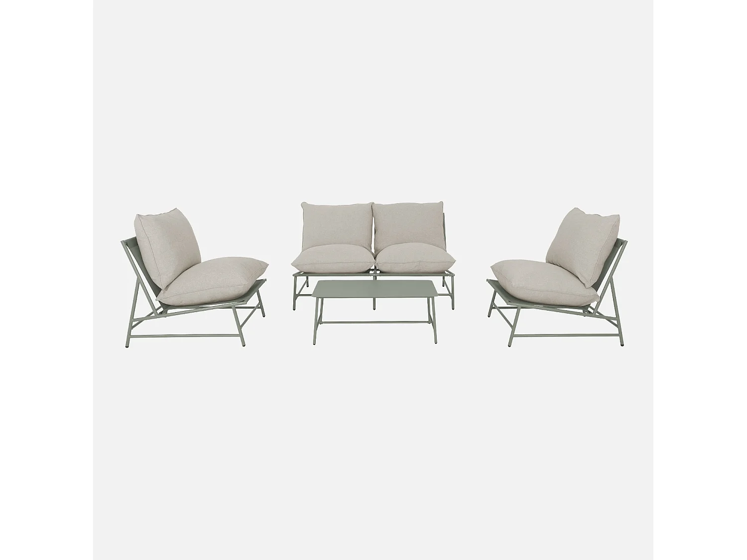 Salotto da giardino in acciaio e textilene a 4 posti, verde kaki