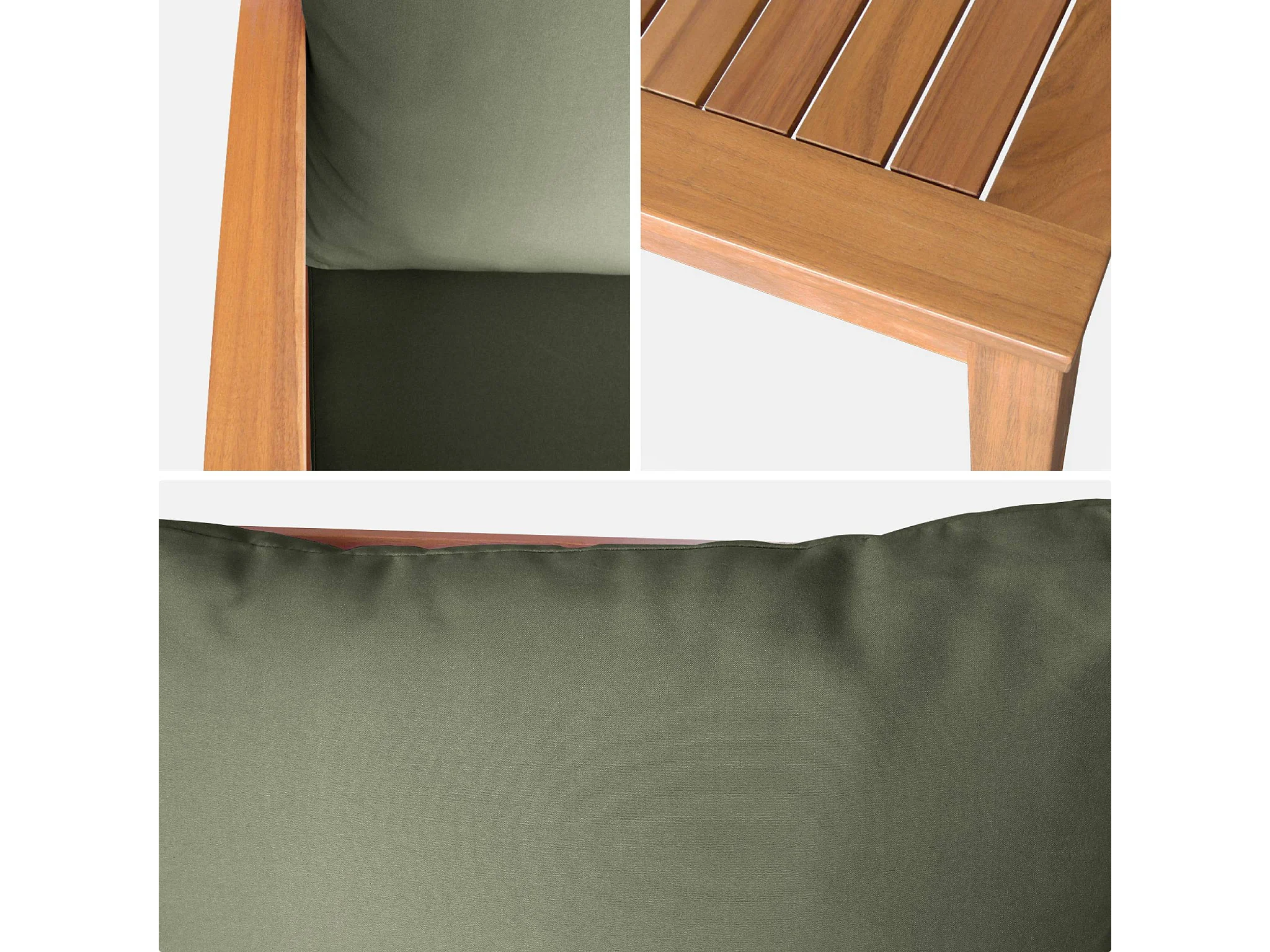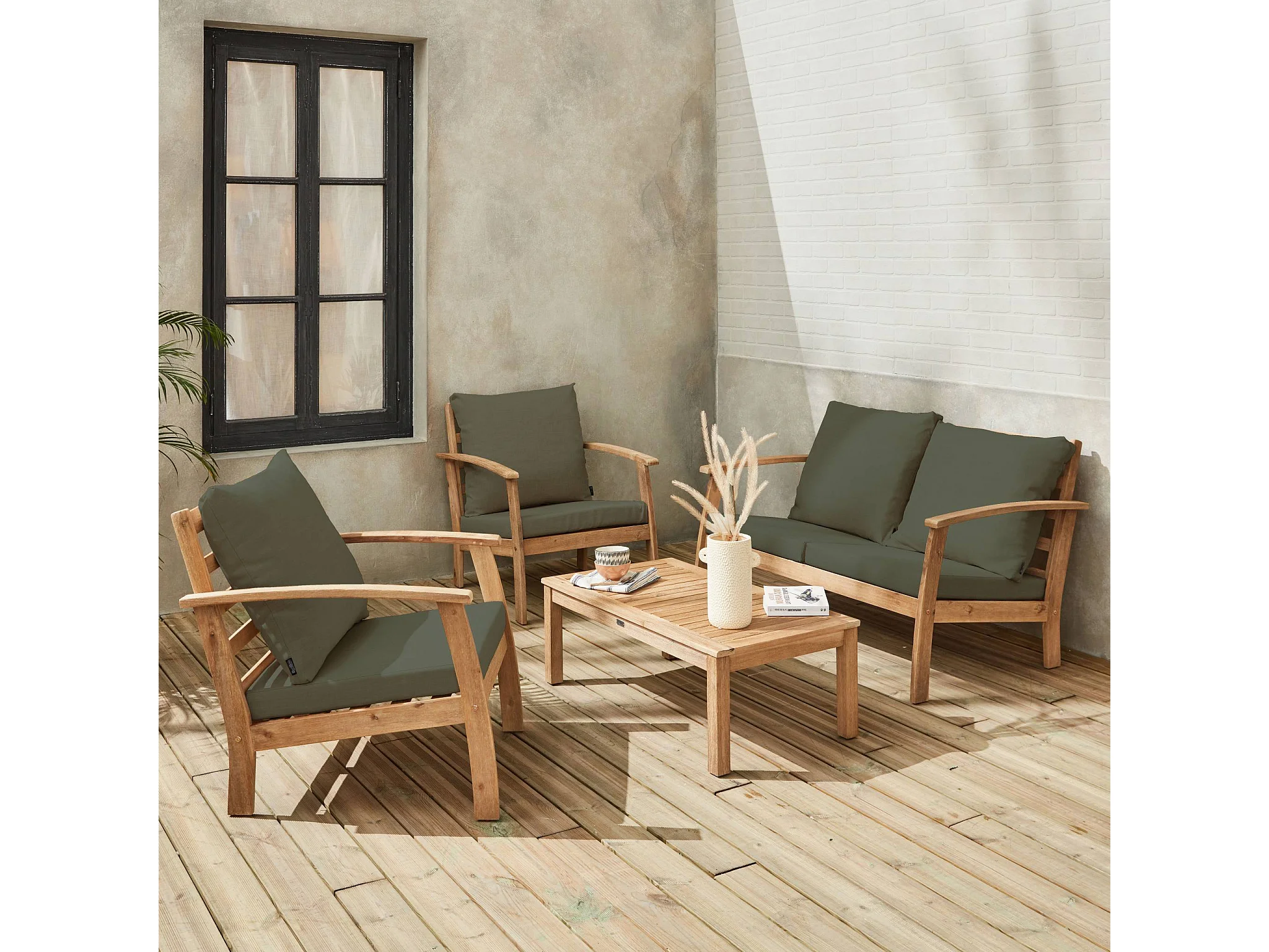 Salotto da giardino in alluminio e acacia, 4 posti, kaki
