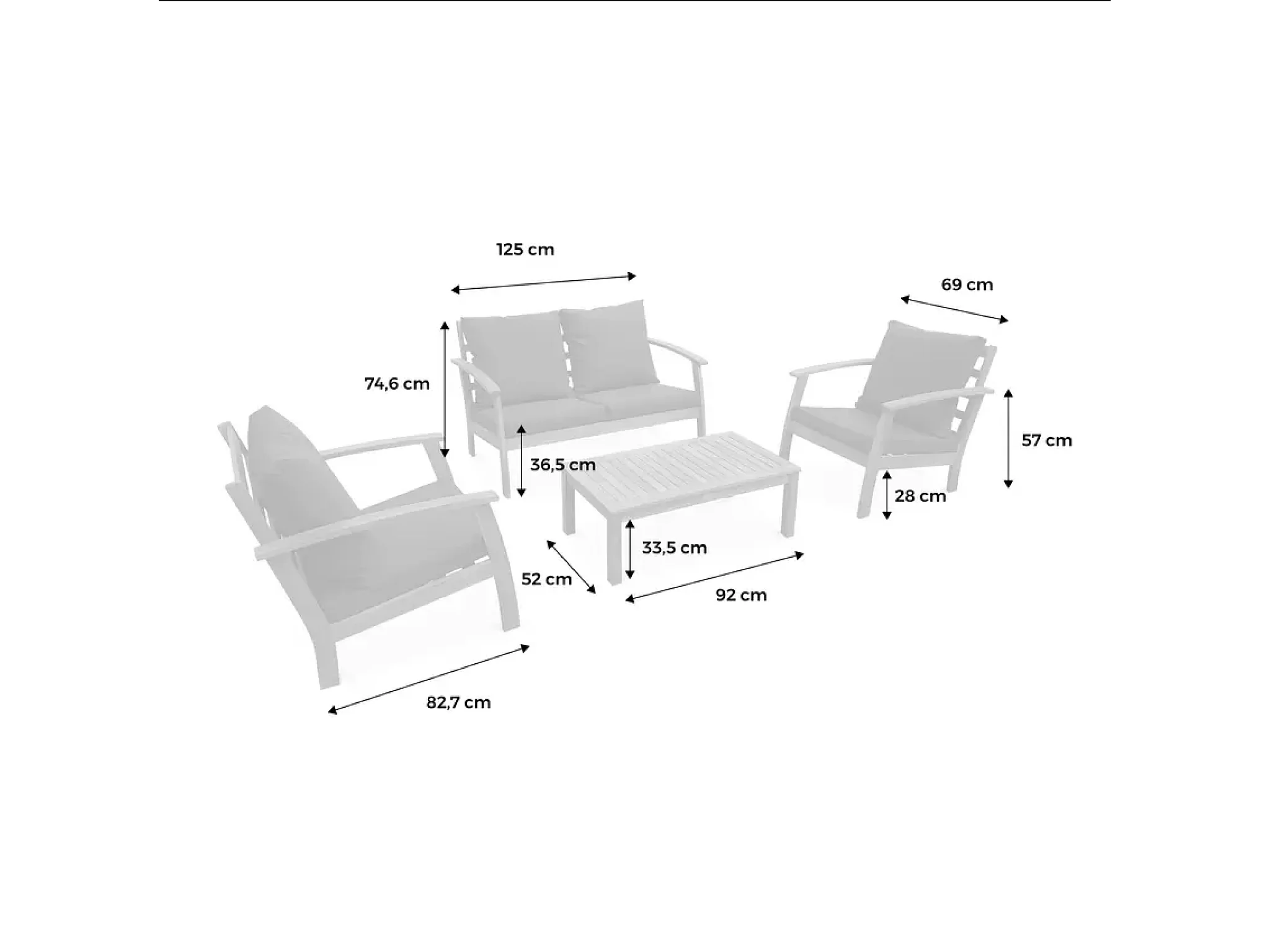 Salotto da giardino in legno a 4 posti, marrone naturale